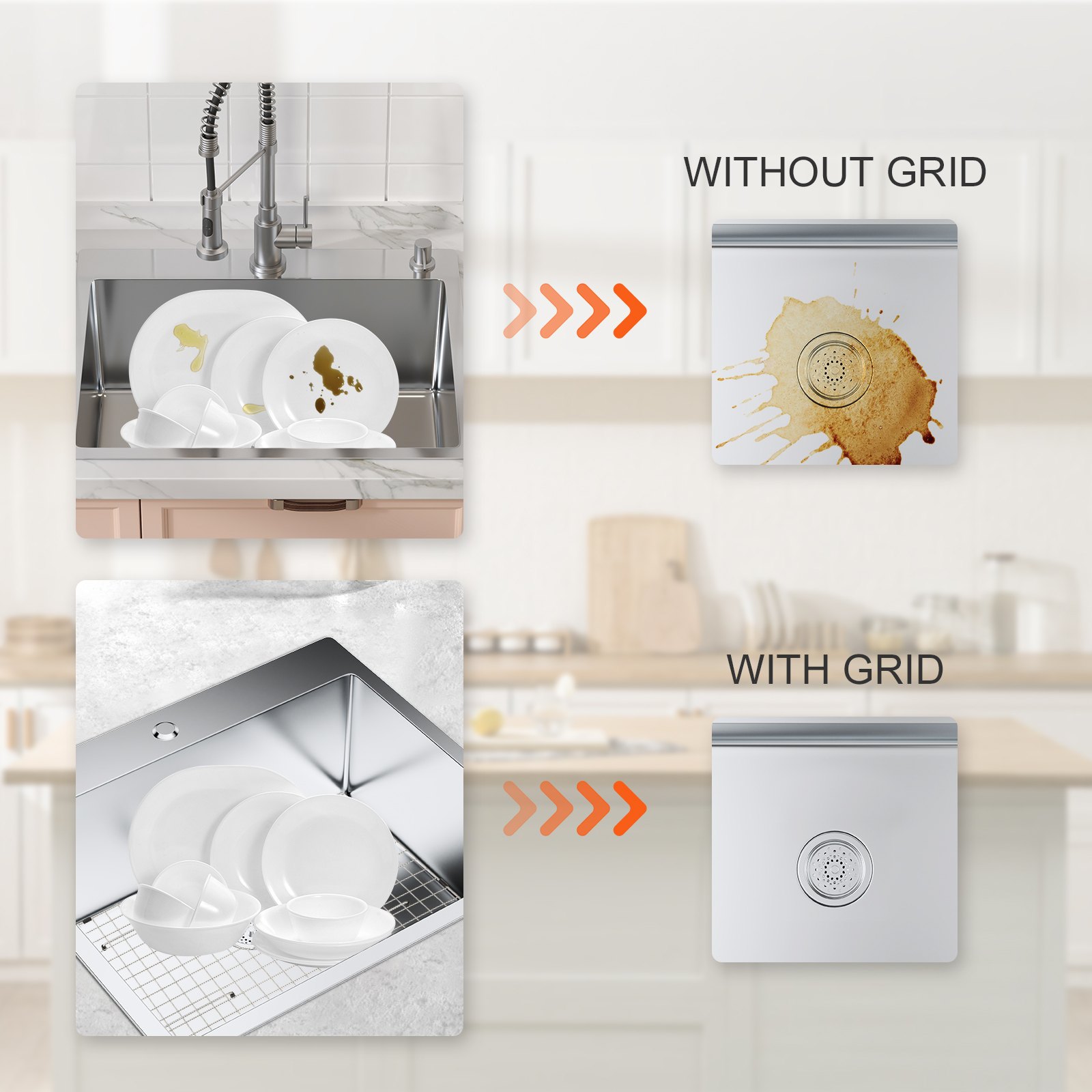 Boja: Srebrna, Model: KM-BHQ-2302-SKU4, Neto težina: 2,5 lbs / 1,13 kg, Količina: 1 pakiranje, Materijal rešetke sudopera: Nehrđajući čelik 304, Dimenzije proizvoda: 28,5 x 15,6 x 1 in / 725 x 395 x 25,4 mm