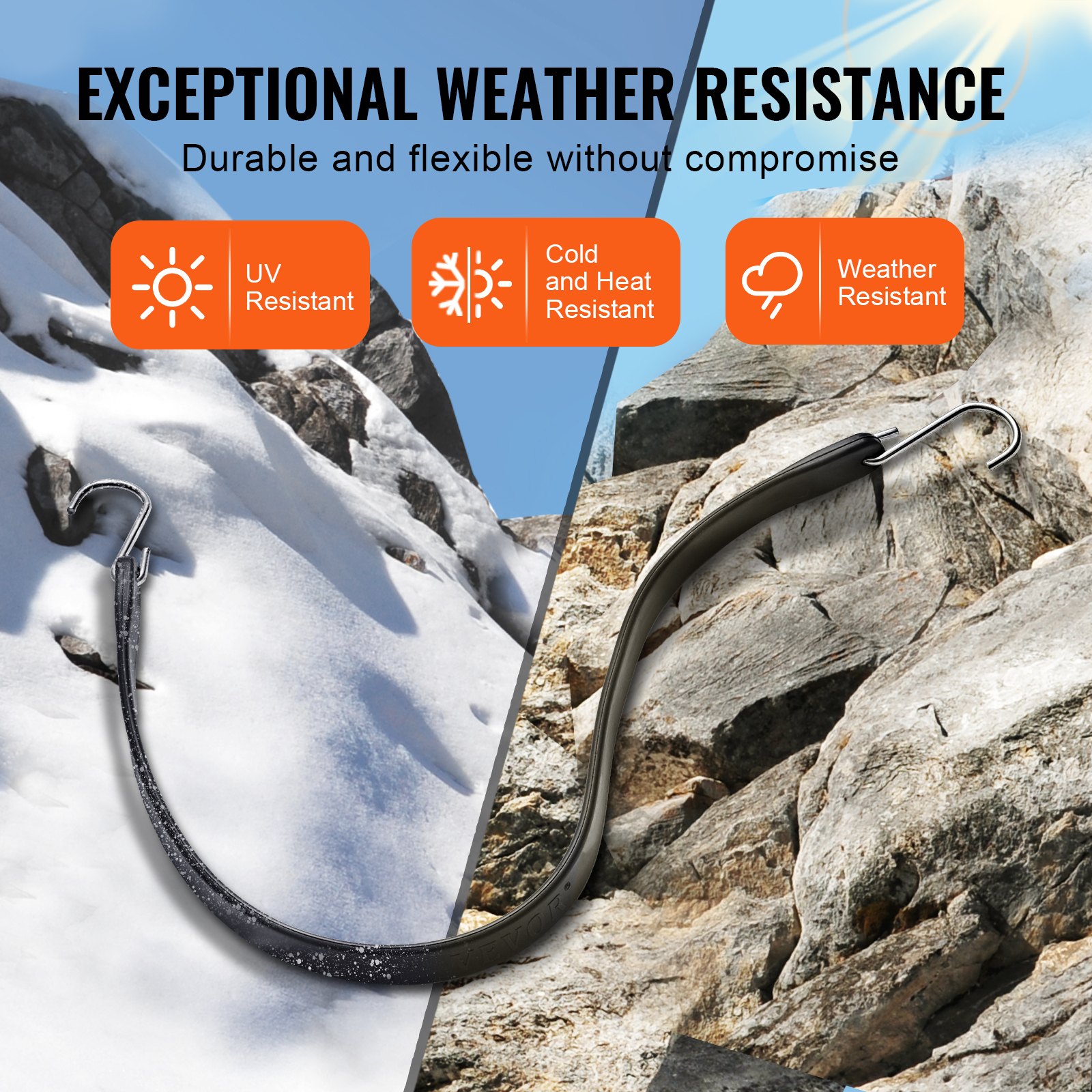 VEVOR Set od 10 ravnih elastičnih užadi, 20 mm teške čelične S-kuke, 61 cm duga elastična elastična užad za teret, cerade, kamione i šatore, crna
