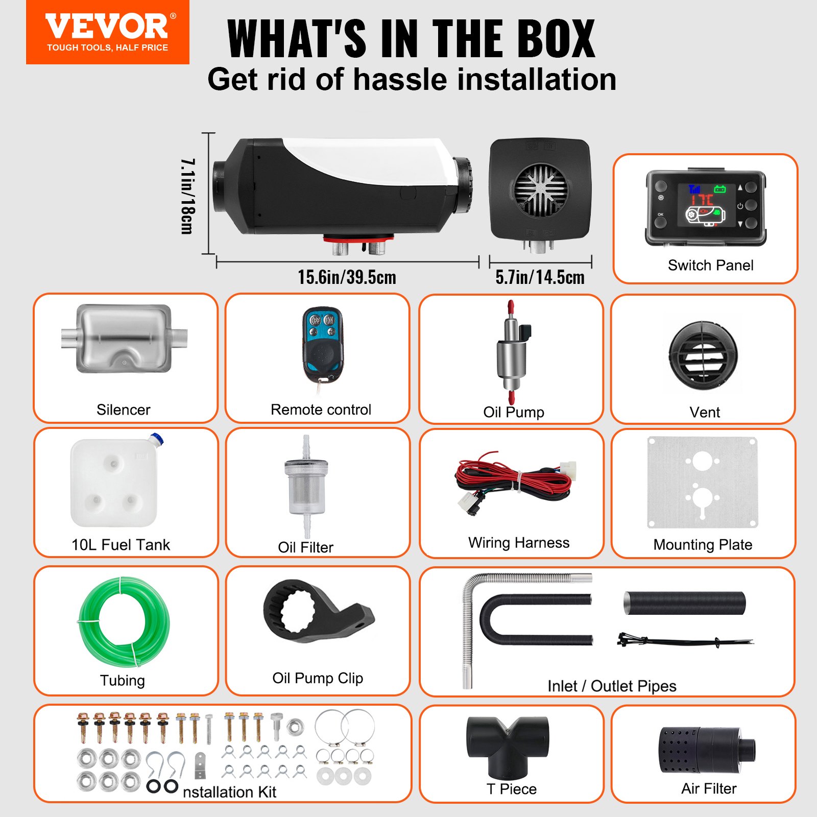 VEVOR 12V dizelski grijač za parkiranje, 5-8KW dizelski grijač zraka, zračni dizelski grijač, zračni parkirni grijač, zračni dizelski grijač, parkirni grijač za automobile, kampere, brodove, kamione, kampere, autobuse