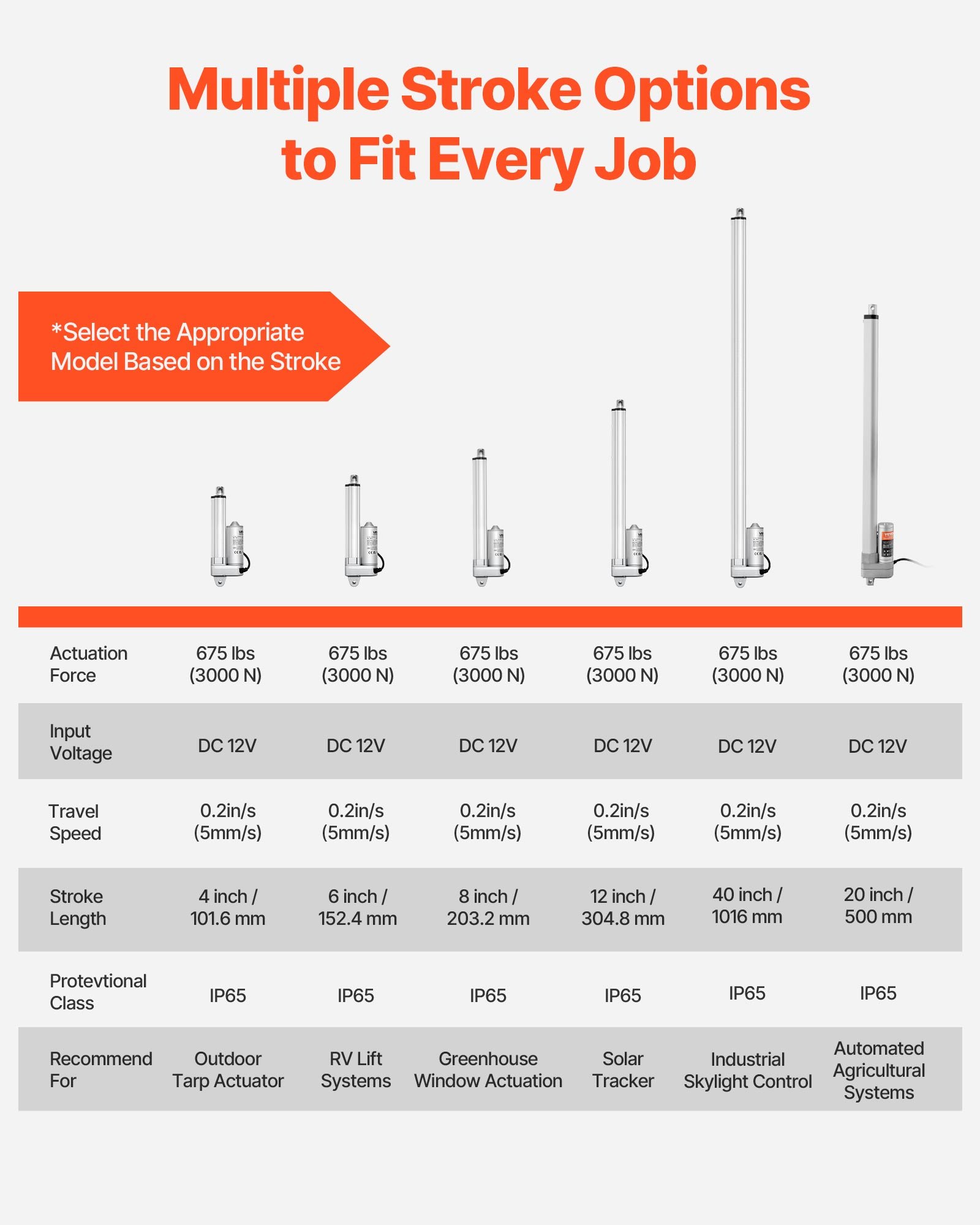 VEVOR 12V linearni aktuator, linearni aktuatori 304,8 mm, vodootporni IP65, linearni aktuator 3000 N, pogoni kretanja 5 mm/s s nosačem za solarne trackere, industrijske strojeve, otvarače vrata