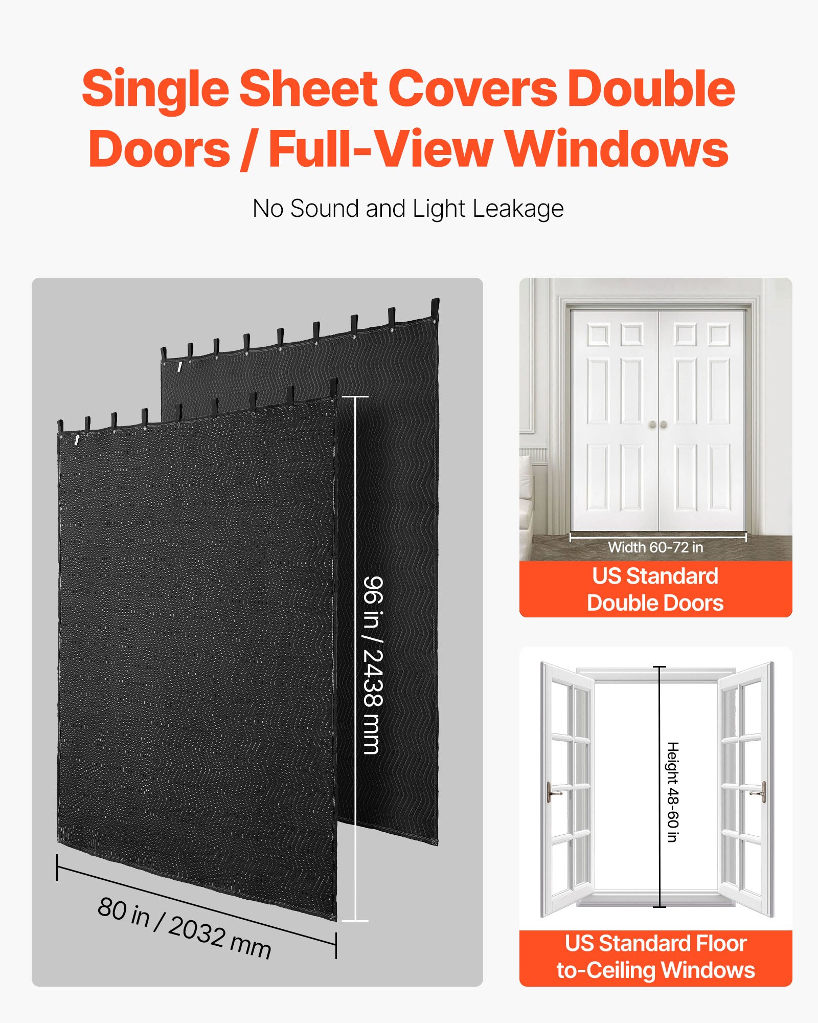 VEVOR 2-pakiranje zvučno izoliranih stropnih obloga, stropovi koji apsorbiraju zvuk, 2438×2032 mm, ekstra veliki akustični strop s ušicama, studijski strop s ušicama i pamučnim punjenjem, za prozore, vrata, blokiranje svjetlosti, snimanje glazbe