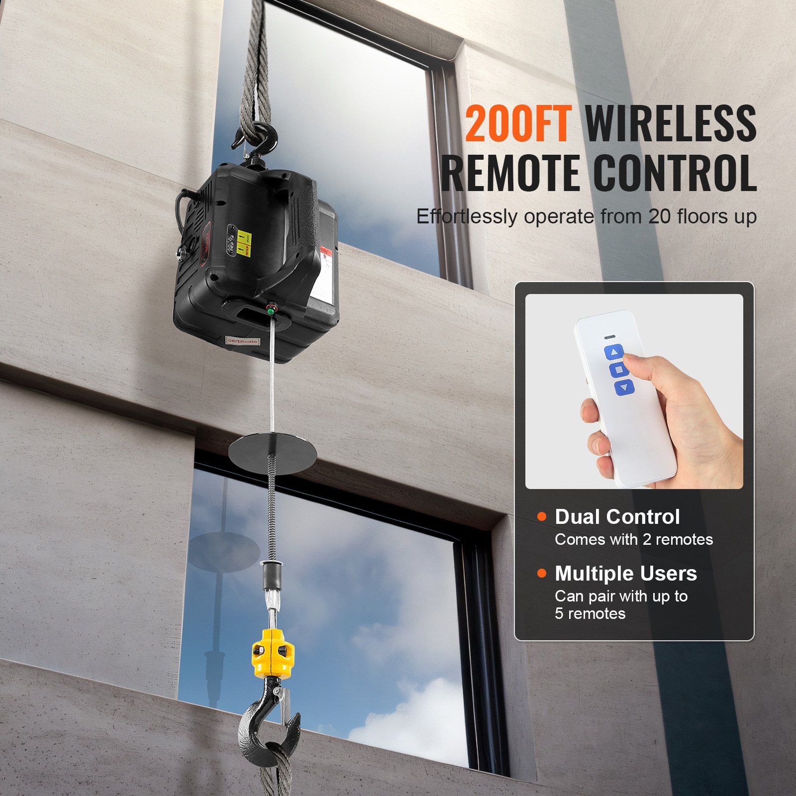 VEVOR 2 u 1 električno vitlo, nosivost 498,95 kg, brzina dizanja ≥4 m/min, motorno vitlo, visina dizanja 7 m, vučna snaga užeta 1500 W, 2 načina upravljanja: ručno/bežično, utikač i… Započnite