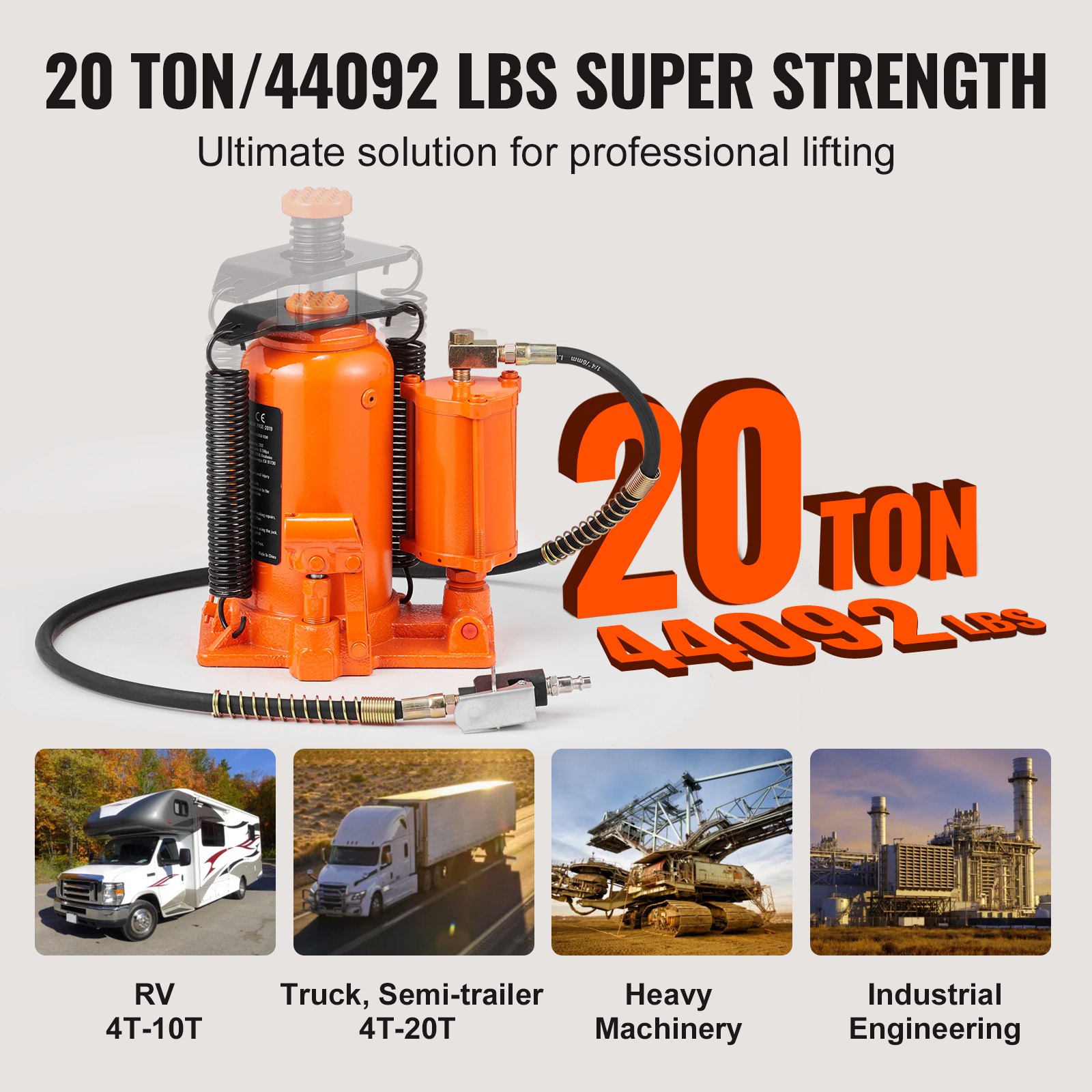 VEVOR 20 t dizalica za boce Hidraulična dizalica za automobile i SUV-ove 265-500 mm Kompaktna dizalica Potporna dizalica Prijenosna hidraulična cilindarska hidraulična dizalica Narančasta dizalica za boce