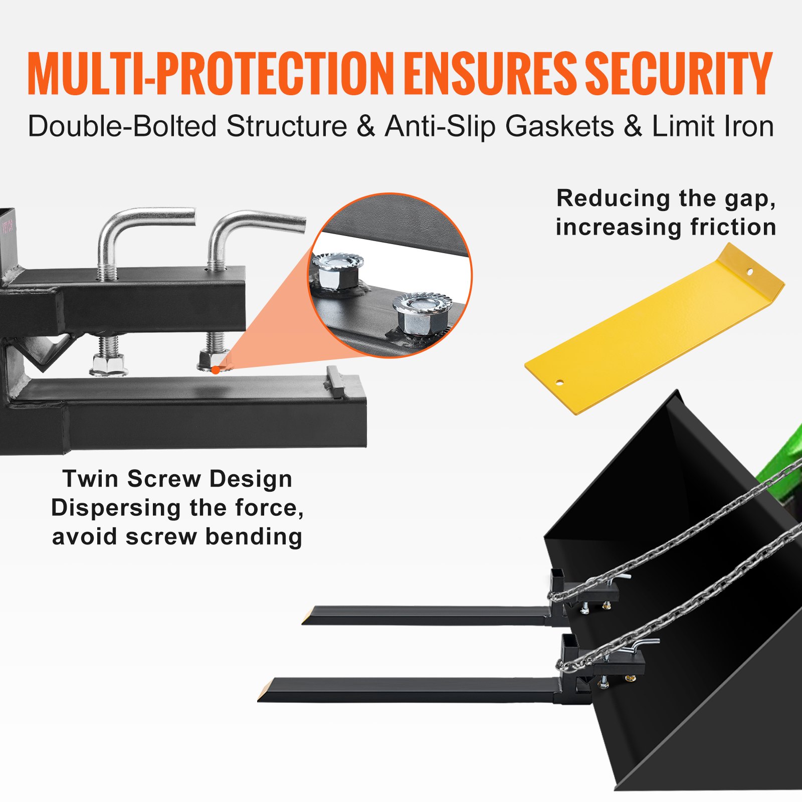 VEVOR 2x Stezne vilice za palete 1490x100x230 mm Nosač vilice Nosivost 1814 kg Zupci vilice Ukupna duljina 149 cm s vilicom od 109,2 cm Viličar Zupci viličara Prednji utovarivač Okvir za palete