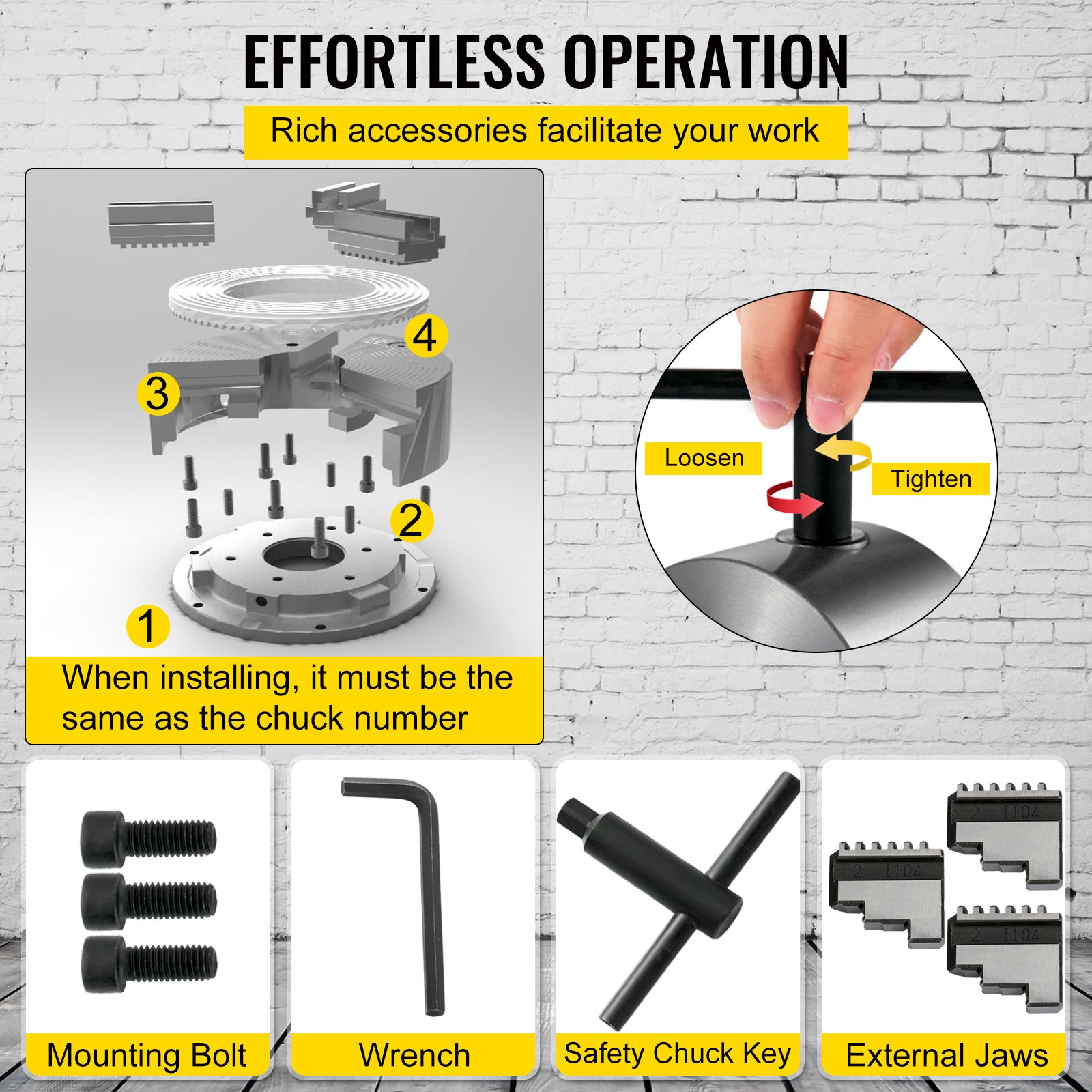 Promjer artikla: 4,92 in / 125 mm, Navoj za montažu: 3-M8, Debljina tijela stezne glave: 58 mm / 2,28 in, Materijal konusnog zupčanika: 40CR čelik, Dimenzije pakiranja: 6,3 x 6,3 x 5,9 in / 16 x 16 x 15 cm, Unutarnji raspon stezanja čeljusti (A-A1): 0,098-1,57 in / 2,5-40 mm, Unutarnji raspon stezanja čeljusti (B-B1): 1,5-4,92 in / 38-125 mm, Težina: 11,2 lbs / 5,08 kg, Promjer kruga vijka: 108 mm (4,25 in), Materijal čeljusti: 40CR čelik, Promjer središnjeg otvora: 1,18 in / 30 mm, Raspon stezanja vanjske čeljusti (C-C1): 38-110 mm (1,5-4,33 in), Materijal zupčanika: 20CR čelik, Materijal tijela stezne glave: Lijevano željezo
