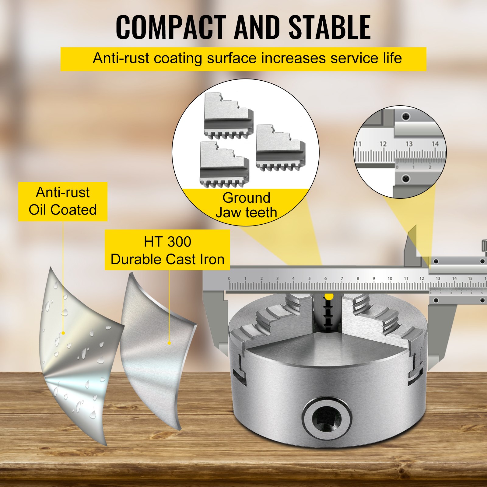 VEVOR 3-čeljusna stezna glava 125 mm, tročeljusna stezna glava 16 x 16 x 15 cm, stezna glava od lijevanog željeza za tokarilicu, samocentrirajuća stezna glava s dva seta čeljusti i visoka preciznost, za brusilicu, glodalicu