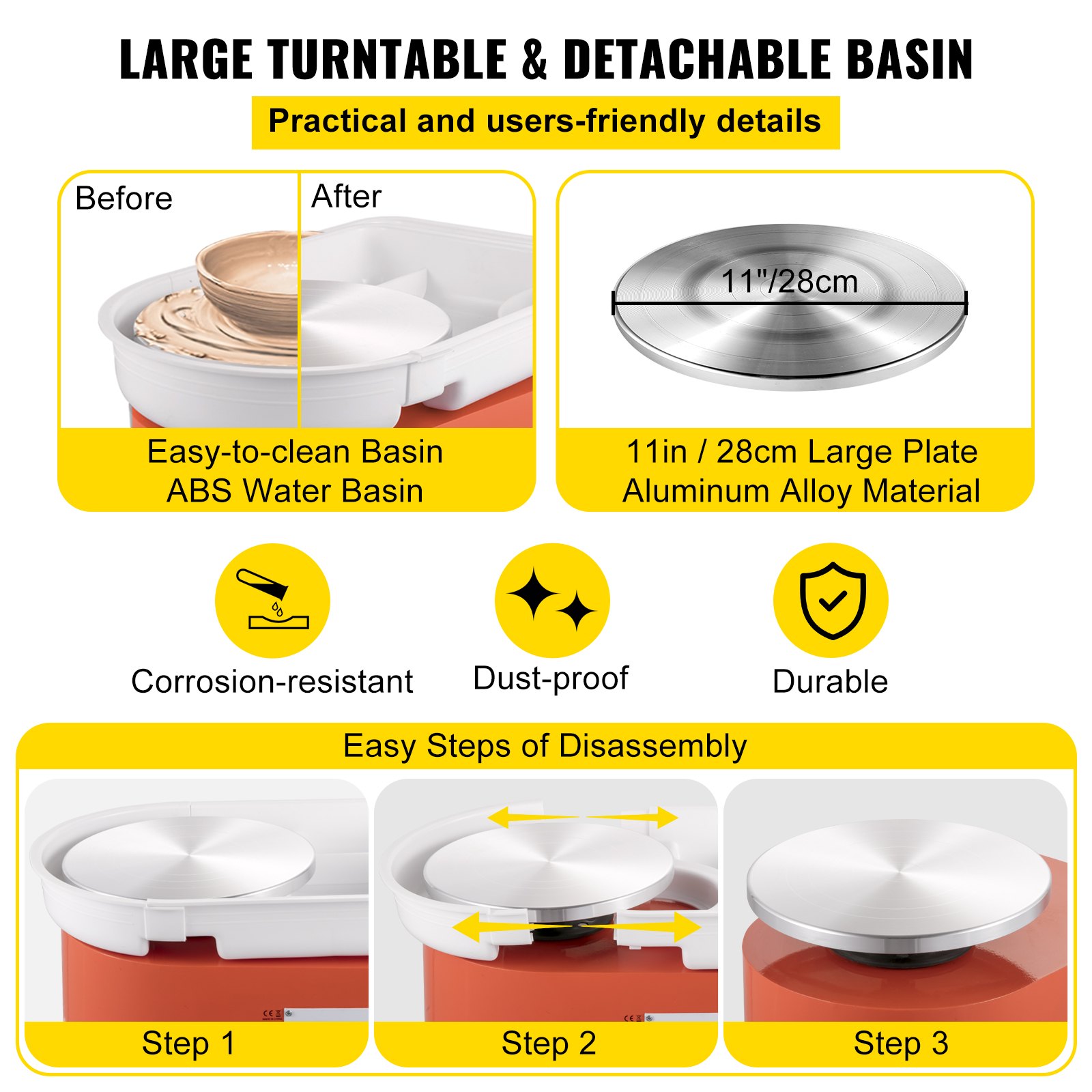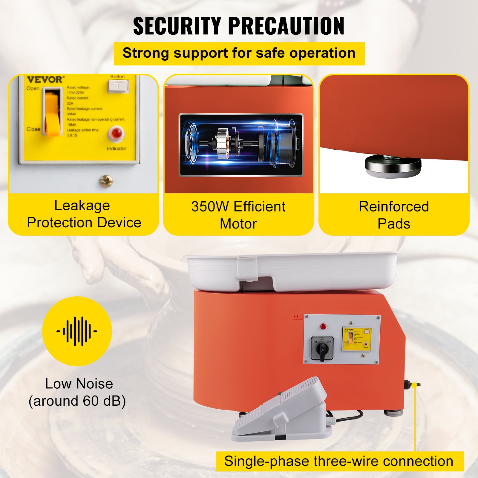 VEVOR 350W 220V stroj za keramičke kotače, električni okretni tanjur 60 dB, stroj za lončarski kotač, maks. 300 o/min, okretni tanjur 28 cm, aluminijska legura, DIY keramika, narančasta, 13,3 kg