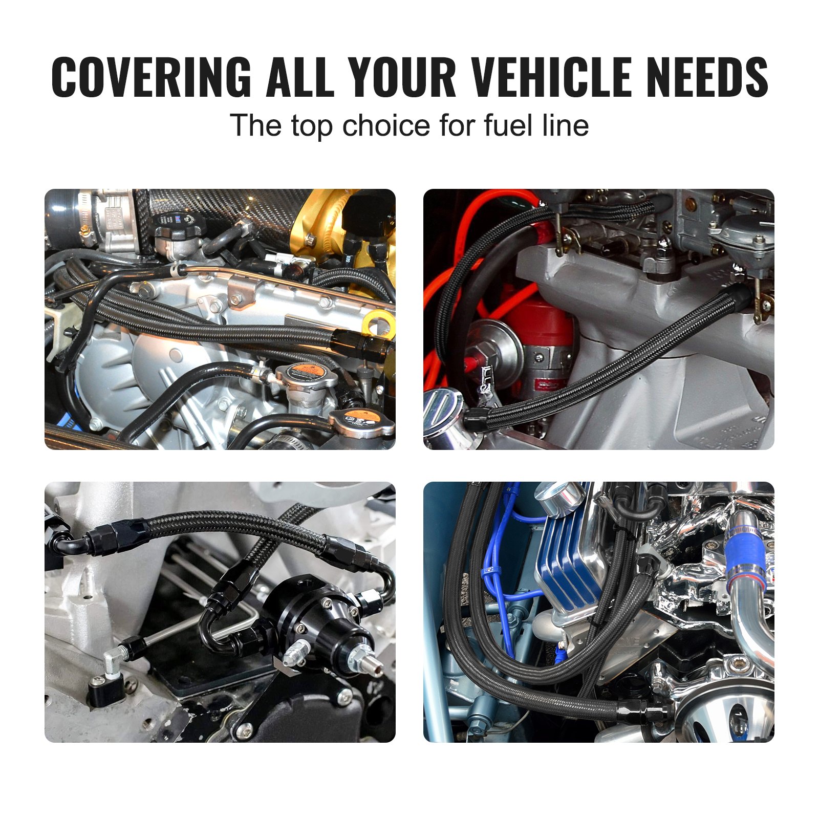 VEVOR 6-AN komplet cijevi za gorivo, komplet crijeva za gorivo 762 cm, komplet za završetak crijeva za gorivo za ulje/plin/dizel 5/16″ s pletenim vrhom od najlona i nehrđajućeg čelika, set od 15 okretnih adaptera