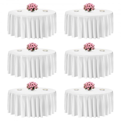 VEVOR set okruglih stolnjaka od 6 dijelova, 3352 mm, zaštitnik za stolnjak bez nabora, poliesterski stolnjak koji se može prati u perilici rublja za zabave, vjenčanja, bankete i svečane događaje, bijeli