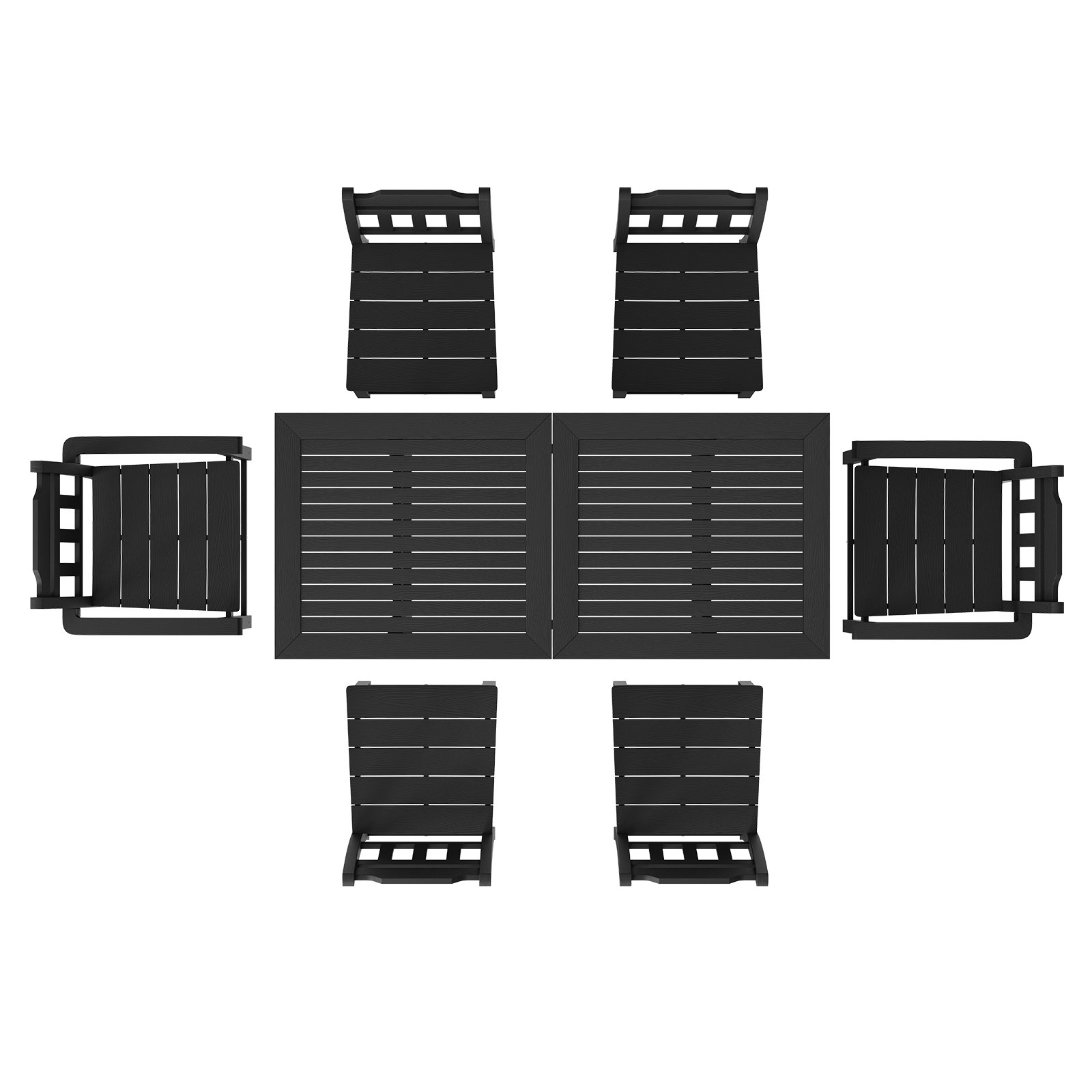 7-dijelni vrtni namještaj, set balkonskog namještaja, 1 stol + 6 stolica, sjedeća grupa 150 kg / 150 kg, otporno na vremenske uvjete, otporno na sunce, blagovaonski set, vrtni namještaj za terasu, moderni balkonski namještaj, crna