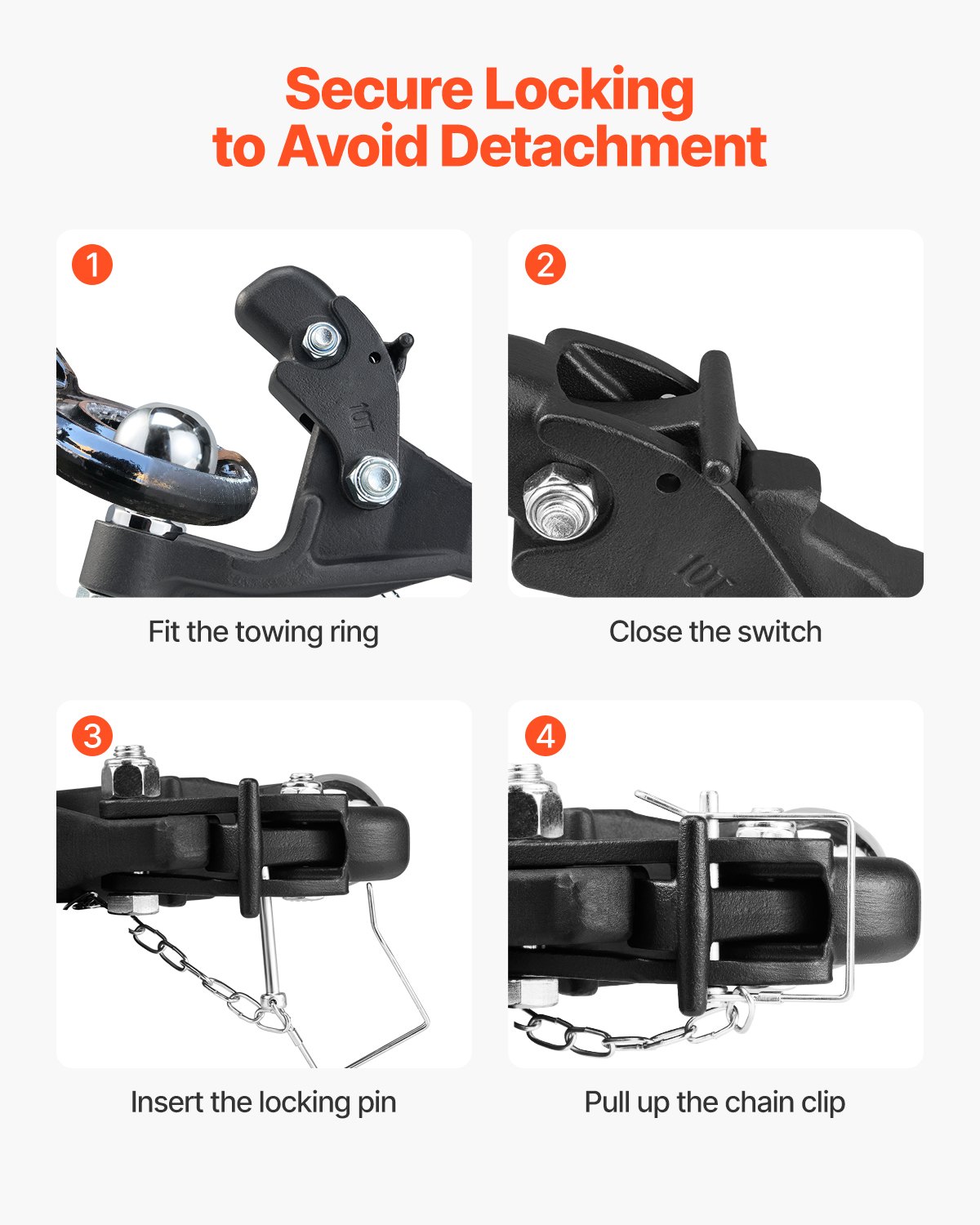 VEVOR 9T vučna kuka, za vučnu kuku 50,8 mm, kombinirana vučna kugla 2-5/16″, odgovara prstenu od 63,5 do 76,2 mm, duljina 397 mm, crni praškasti premaz