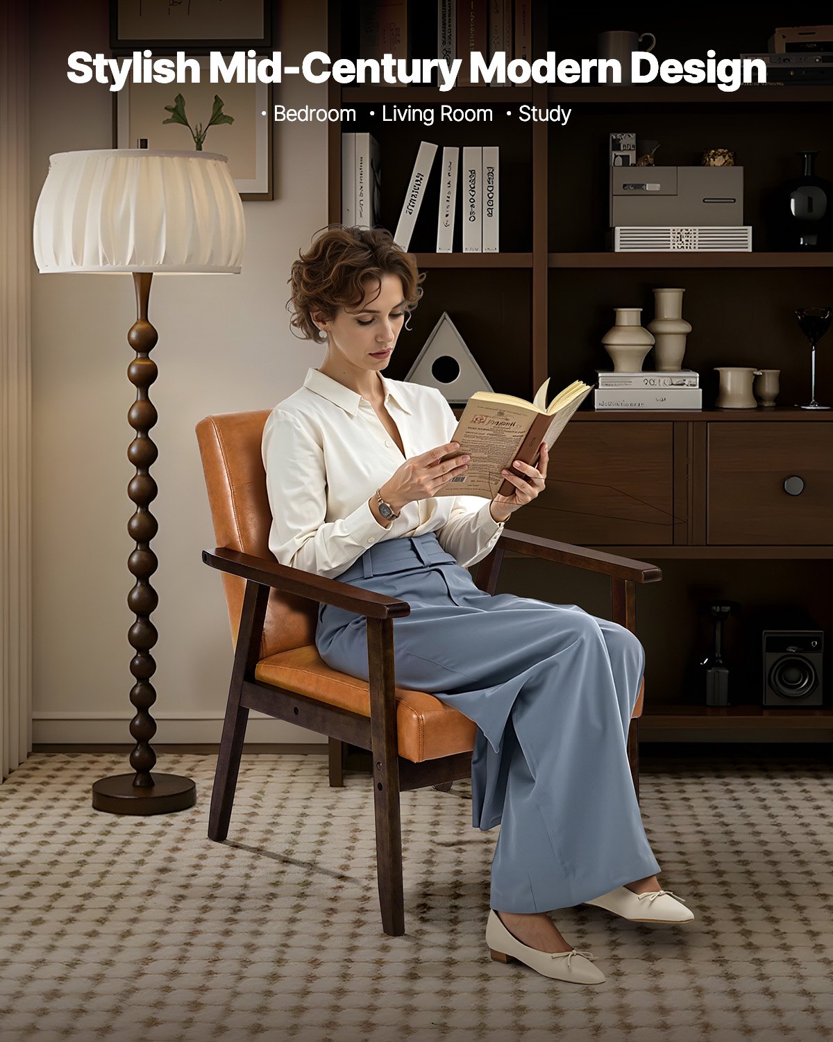 VEVOR Naslonjač za glavu s okvirom od punog drva i neklizajućim nogama, tapecirane stolice za odmor, blagovaonske stolice s PU kožom i mekim jastukom, za dnevni boravak, spavaću sobu, radnu sobu, ured