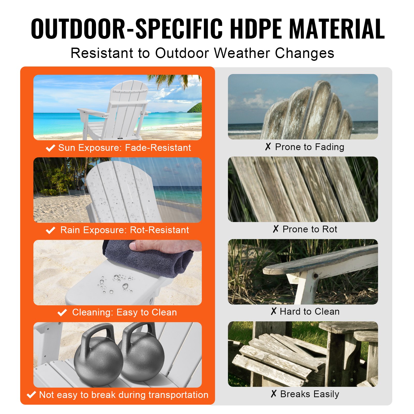 VEVOR Plastična Adirondack stolica, set od 2, otporna na vremenske uvjete, prijenosna, sklopiva, stolica za ognjište, vanjska Adirondack vrtna stolica s držačem za piće, opuštajući naslon za ruke, ergonomska, za vrt, dvorište – bijela