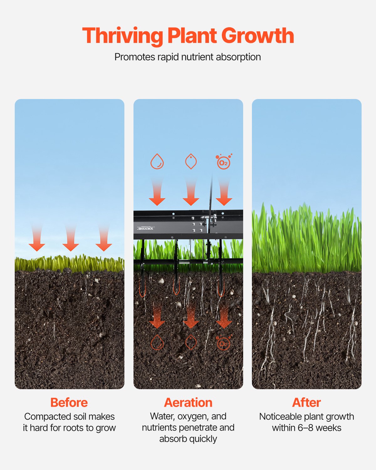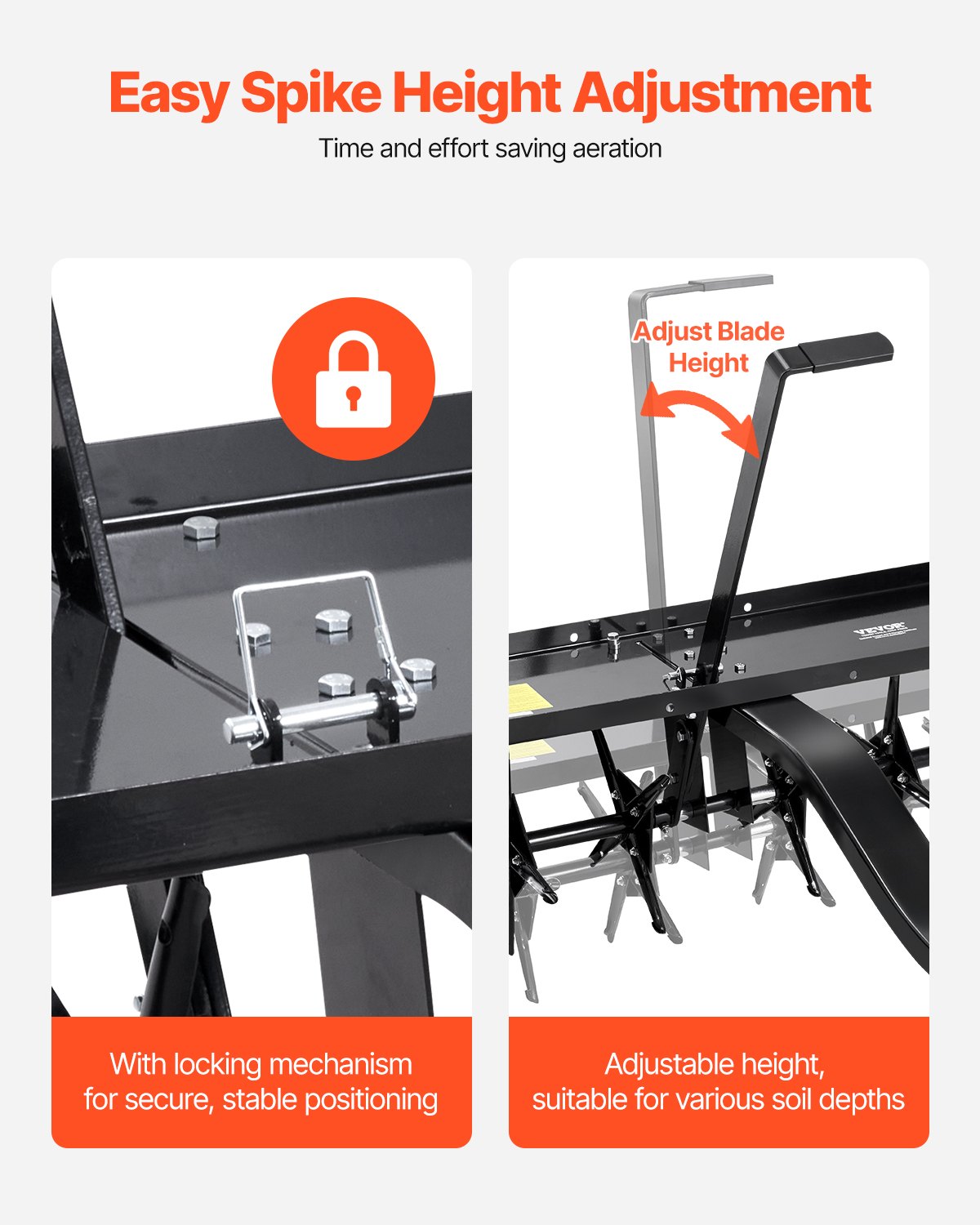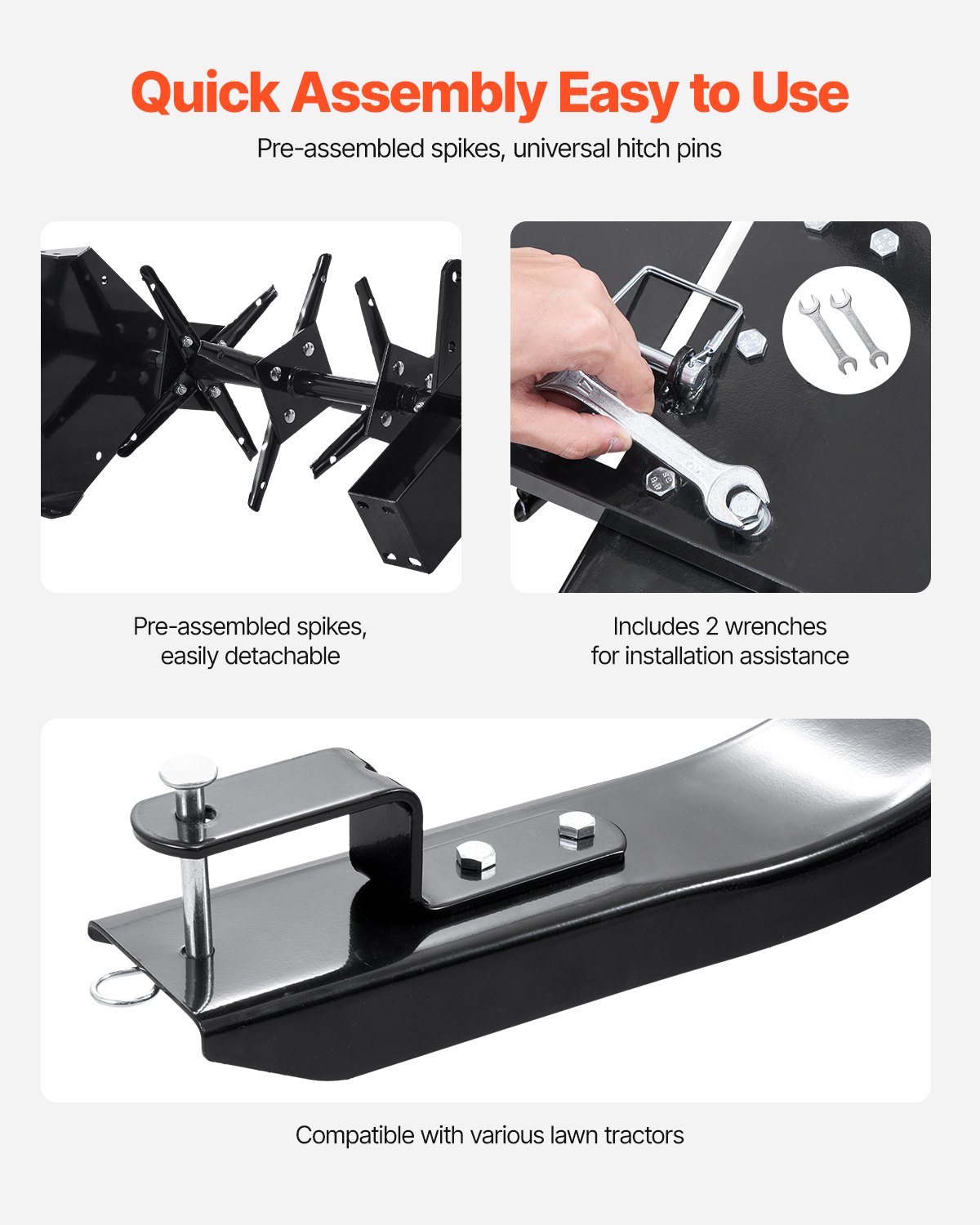 VEVOR Aerator, 1500x980x885 mm, Vučni aerator za travnjak s univerzalnom kvakom, Kosilica s izmjeničnim željeznim šiljcima, Aerator za travnjake za vrtove, travnjake, farme