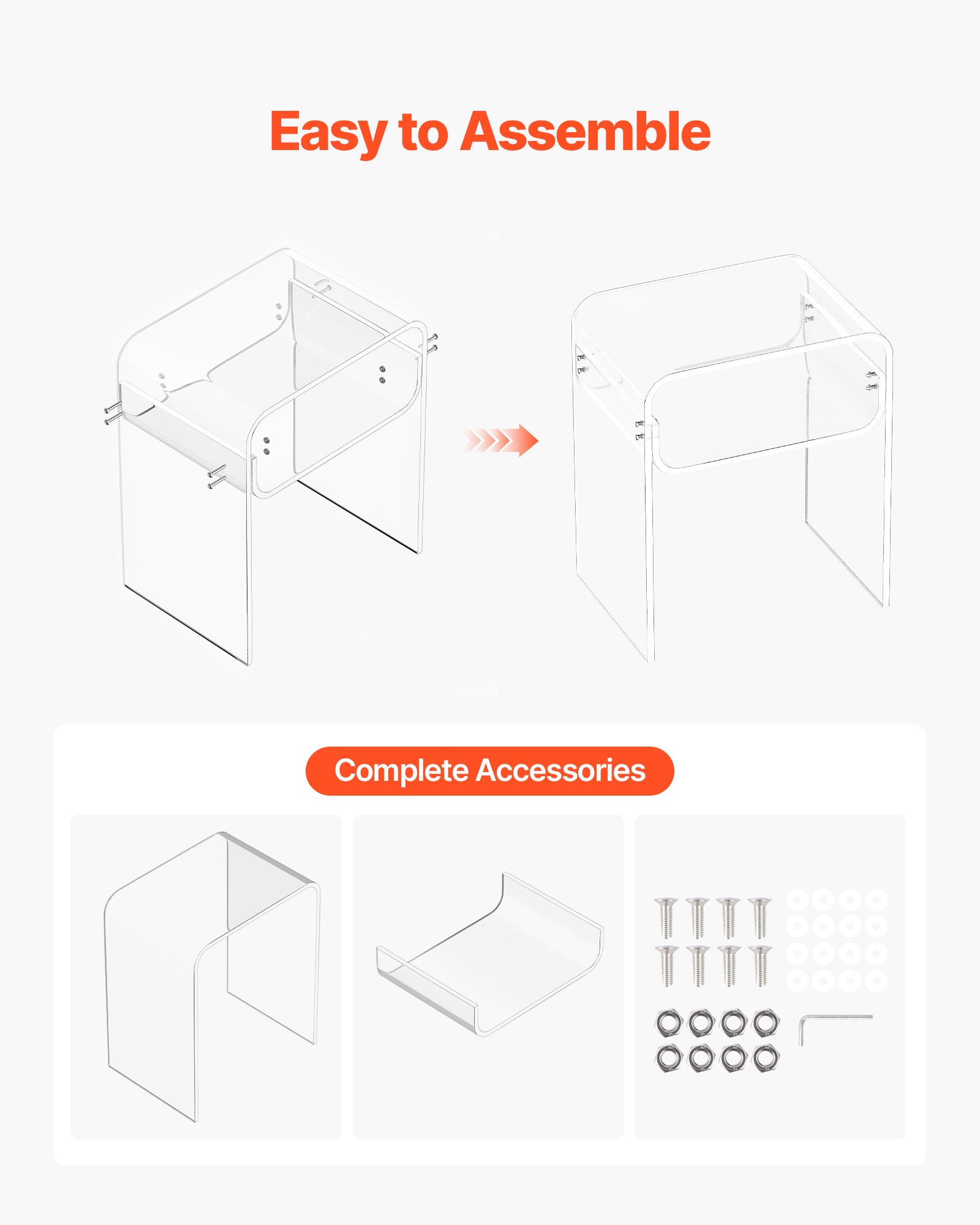 VEVOR akrilni bočni stolić, 2-slojni prozirni noćni ormarić s policom, moderni pravokutni akrilni stol, debeli noćni ormarić za spavaću sobu, dnevni boravak, radnu sobu, 30 x 40 x 50 cm