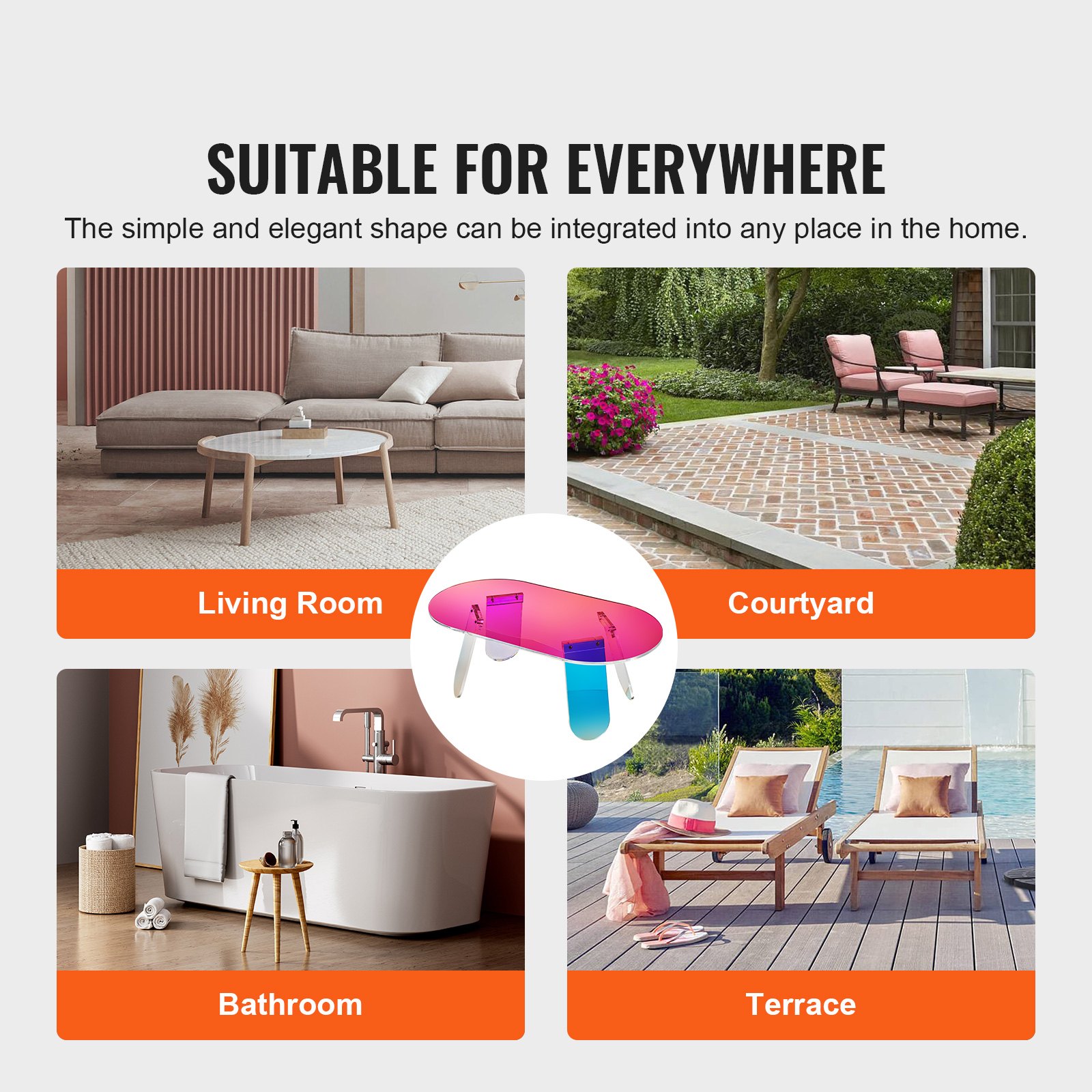 VEVOR akrilni bočni stolić 95 x 50 cm, šareni akrilni bočni stolić, barski stolić, jednostavan za čišćenje, akrilni stolić za kavu, piće, hranu, grickalice, stolić za dnevni boravak, spavaću sobu itd.