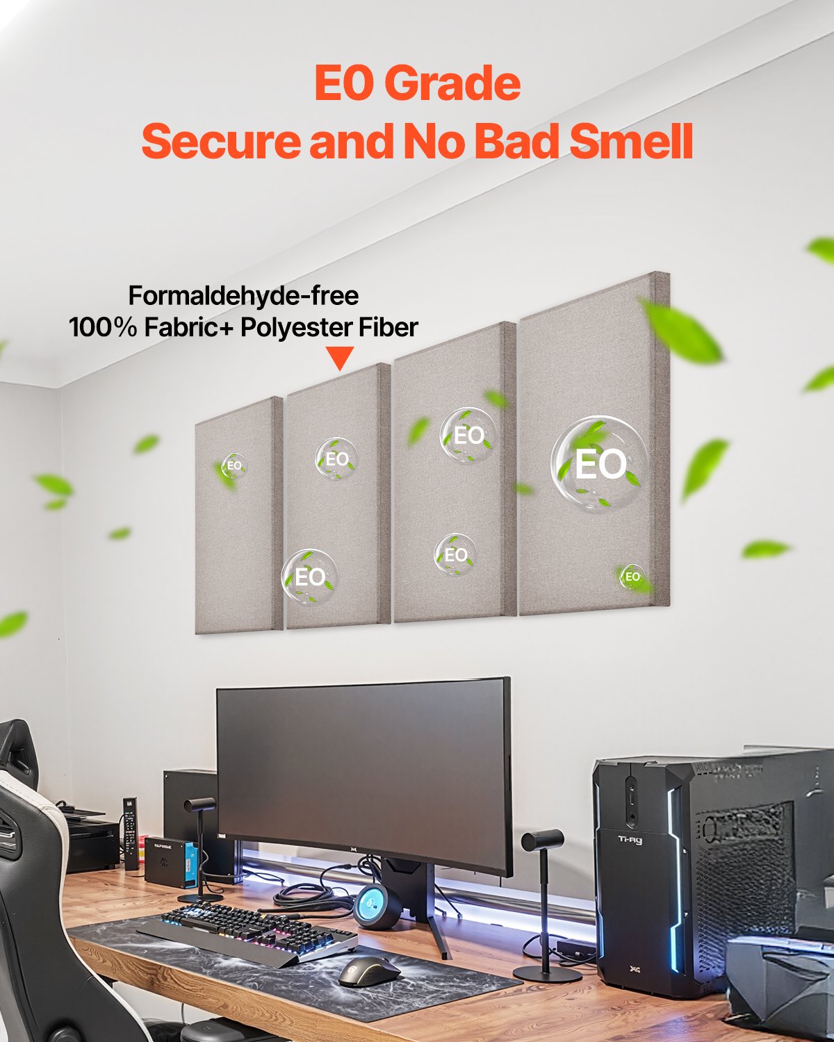 VEVOR akustične ploče, 4 komada, debljine 5,1 cm, 60,4 x 30 cm, stakloplastika, ploče koje apsorbiraju zvuk, samoljepljive, zvučno izolirane zidne ploče, za studije, urede, kućna kina, konferencijske dvorane, boja deva