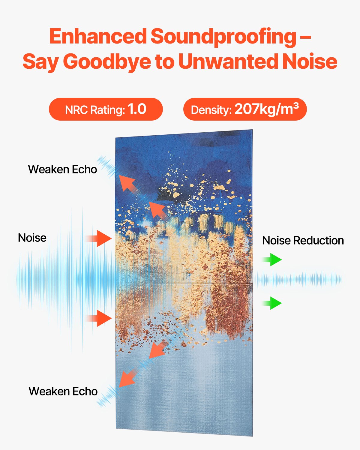 VEVOR Akustične ploče, 6 komada, 1800x1200x10 mm, Akustične zidne ploče, Samoljepljive dekorativne ploče za prigušivanje zvuka i apsorpciju zvuka za dom, ured, studio, igraonicu, kazalište, slike