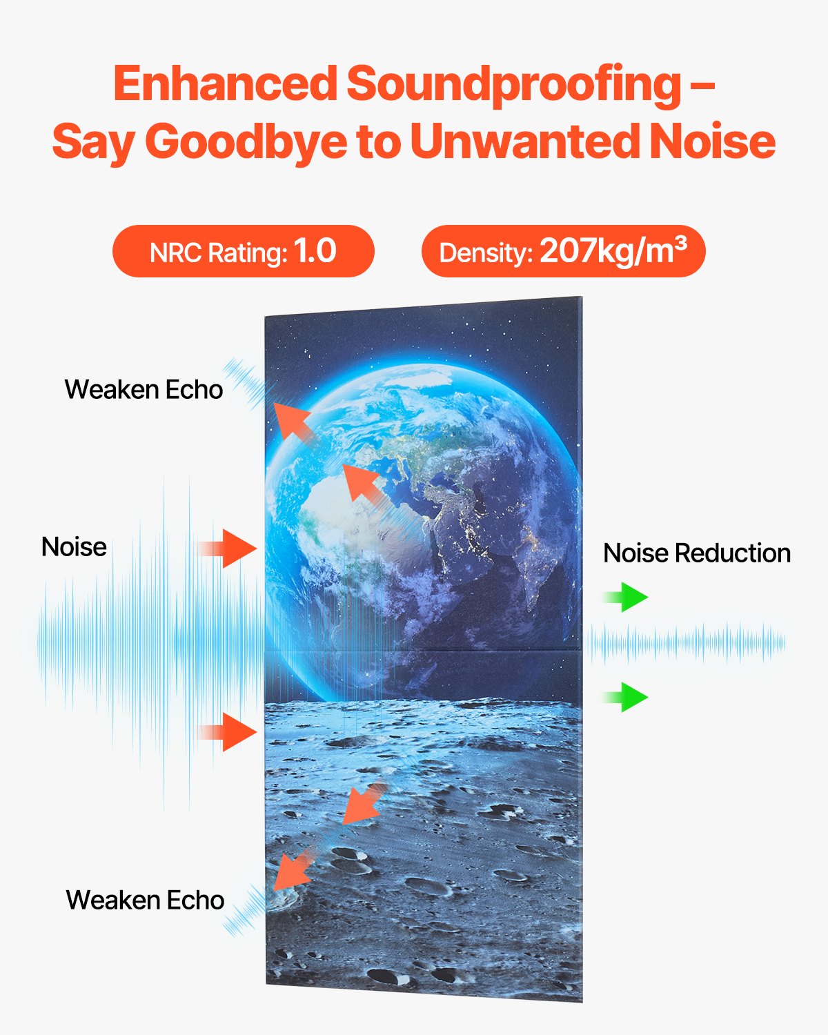 VEVOR Akustične ploče od 6 komada, 1800x1200x10 mm, Akustične zidne ploče, Samoljepljive dekorativne ploče za prigušivanje zvuka i apsorpciju zvuka za dom, ured, studio, igraonicu, kazalište, Earth