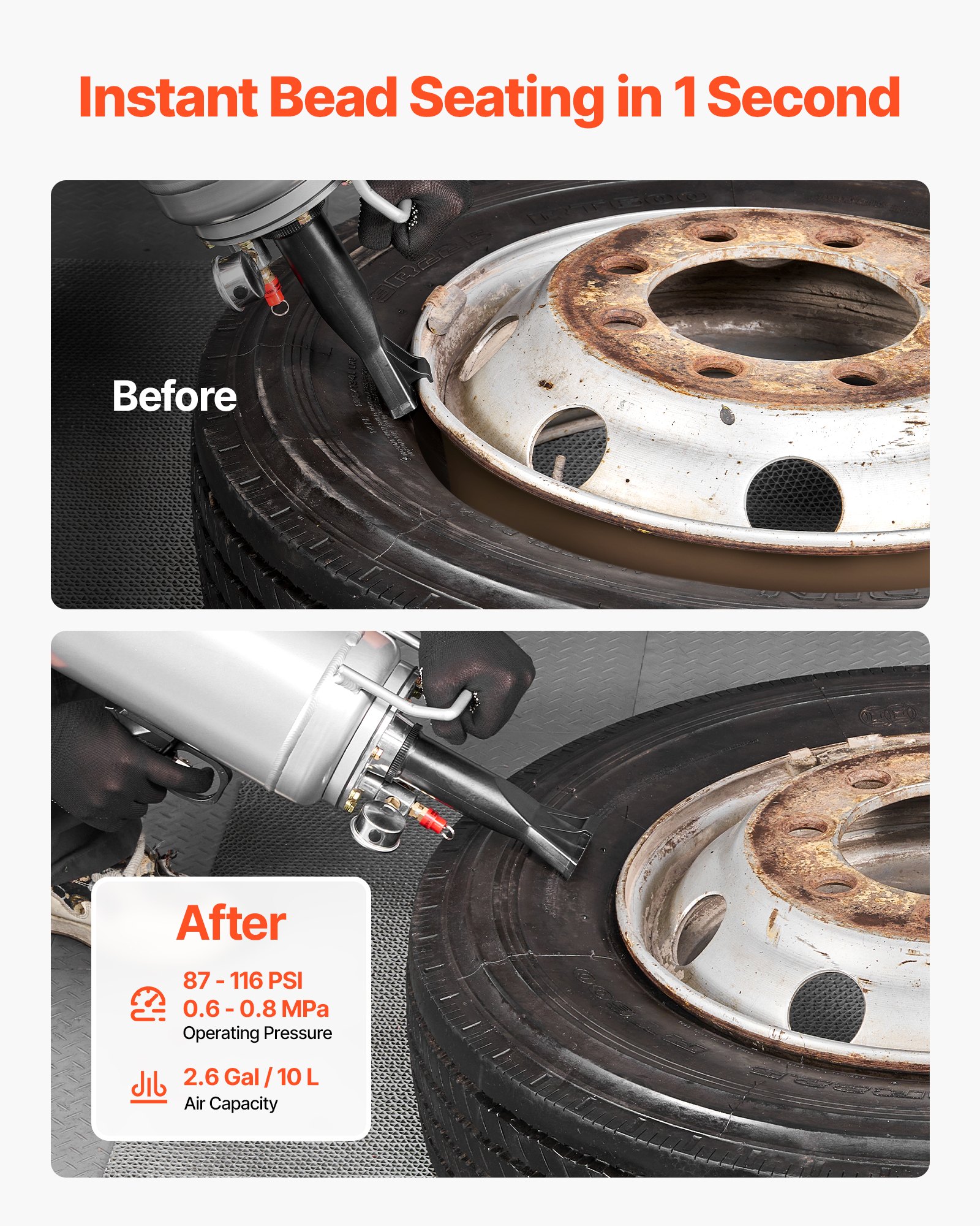 VEVOR Alat za izradu perli za gume 10 L Zračni pištolj za napuhavanje guma Zračni pištolj za napuhavanje guma Ručni pištolj za napuhavanje guma, Poboljšani prijenosni pištolj za napuhavanje guma, 0,6-0,8 MPa za automobile, motocikle, SUV-ove, kamionete, ATV-ove, srebrne boje