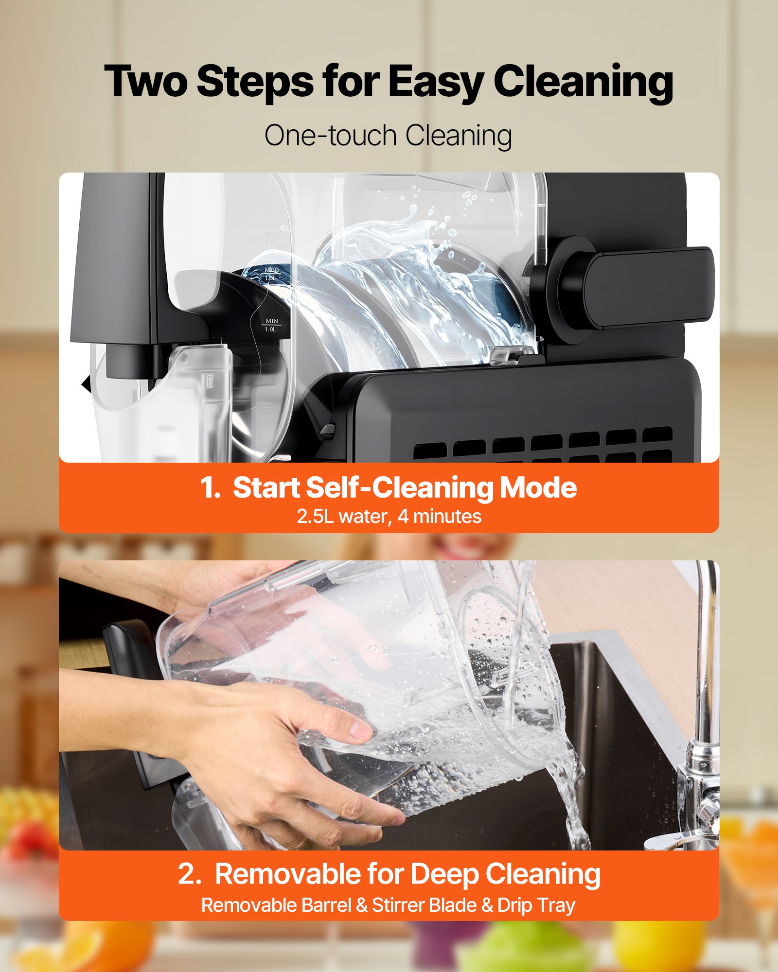 VEVOR aparat za slushie, kapacitet 2,5 l, aparat za smrznute napitke s 5 unaprijed postavljenih programa, aparat za margaritu s automatskim čišćenjem, smrznute margarite, frapei, milkshakeovi