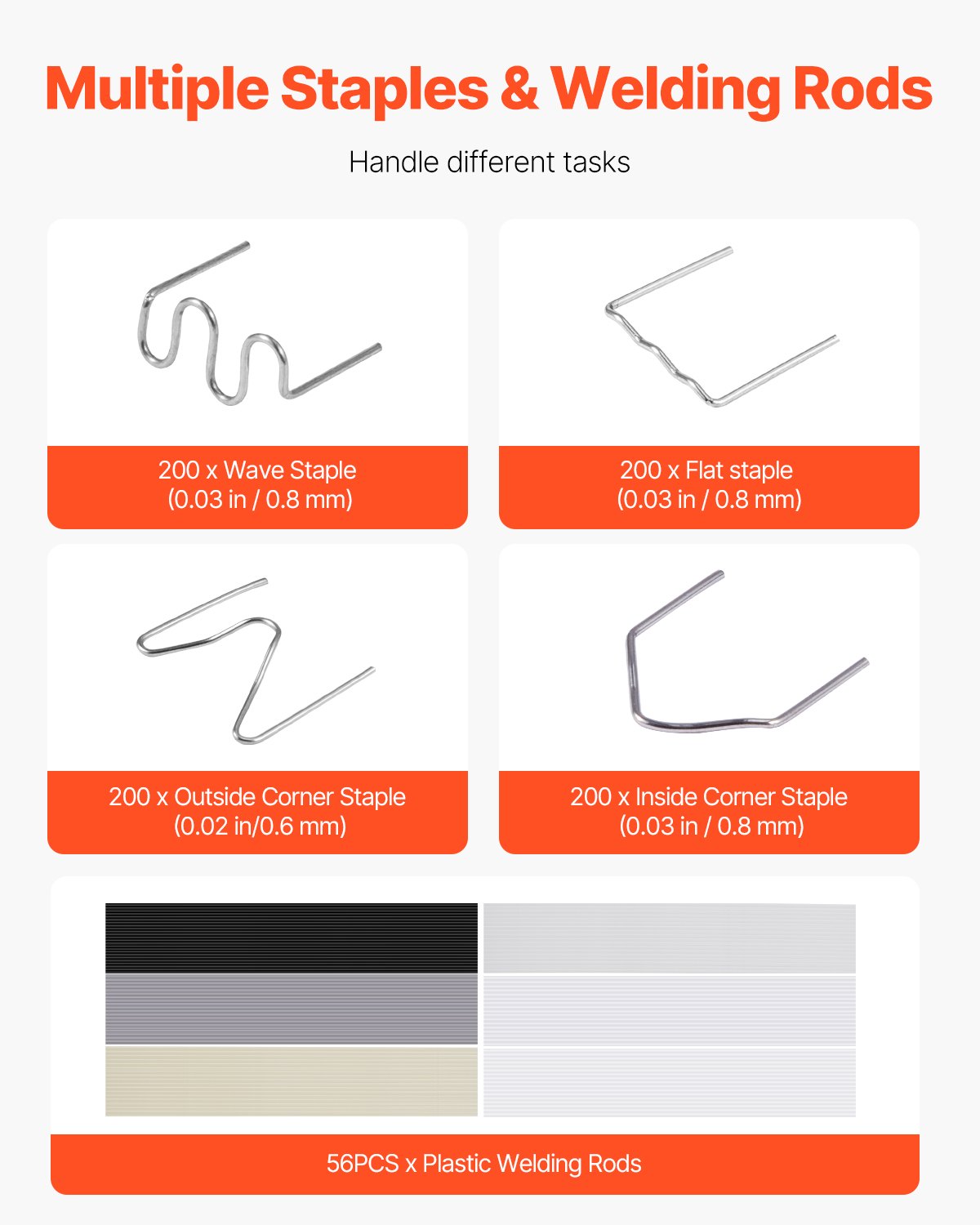 VEVOR aparat za zavarivanje plastike, komplet za popravak plastike od 220 W s 800 vrućih spajalica i 56 šipki za zavarivanje, pištolj za zavarivanje s LED svjetlom, torba za nošenje za kajake, igračke, popravak branika automobila