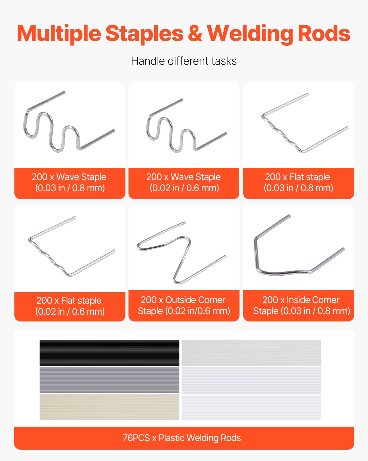VEVOR aparat za zavarivanje plastike, pištolj za zavarivanje od 220 W s 1200 vrućih spajalica i 76 šipki za zavarivanje, set za popravak plastike s LED svjetlom, torba za nošenje kajaka, igračaka, popravak branika automobila