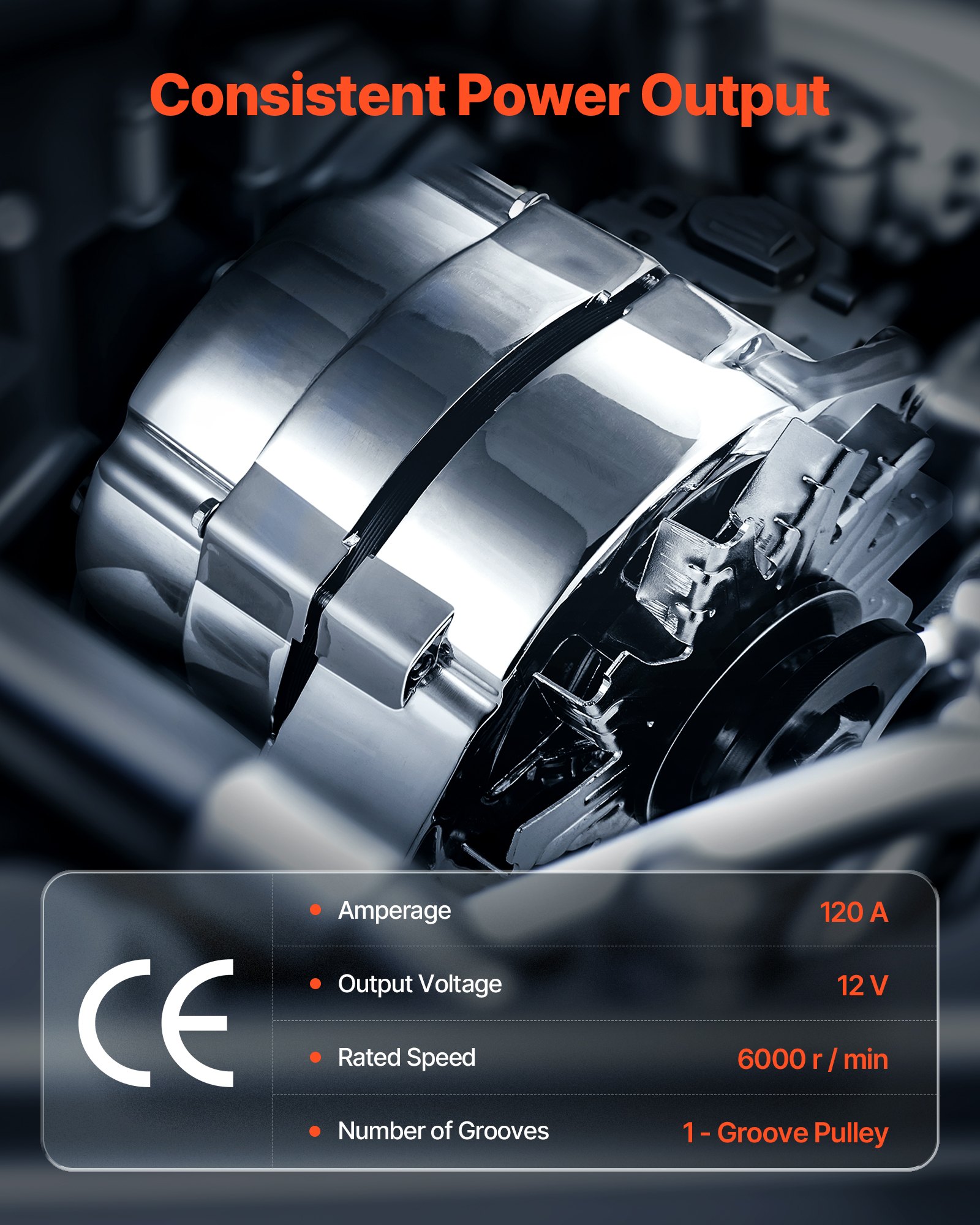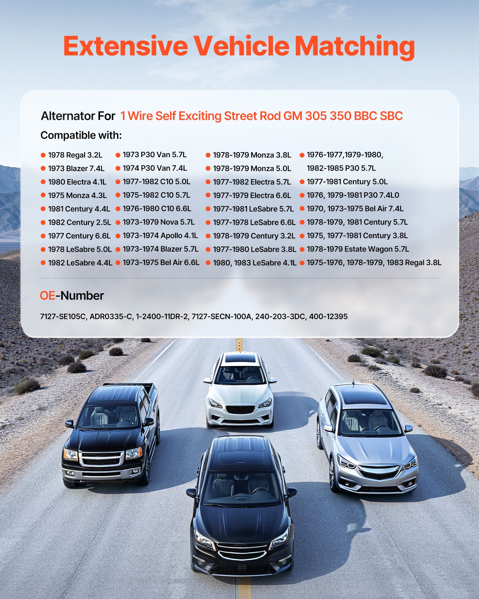 VEVOR automobilski alternator 7127-SE105C, za 1-žični samopobudni Street Rod GM 305 350 BBC SBC, 1973.-1974. Apollo 4.1L, 1982. Century 2.5L, zamjenski automobilski alternator 1-2400-11DR-2, 7127-SECN-100A