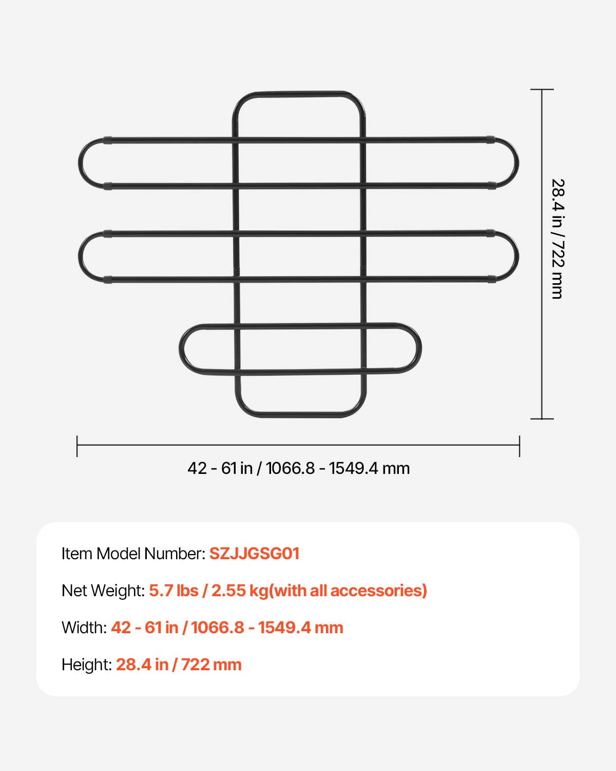 Veličina proizvoda: 61 x 28,4 x 1,3 inča / 1550 x 722 x 32 mm (maksimalna veličina), neto težina: 5,7 lbs / 2,55 kg (sa svim priborom), broj modela artikla: SZJJGSG01