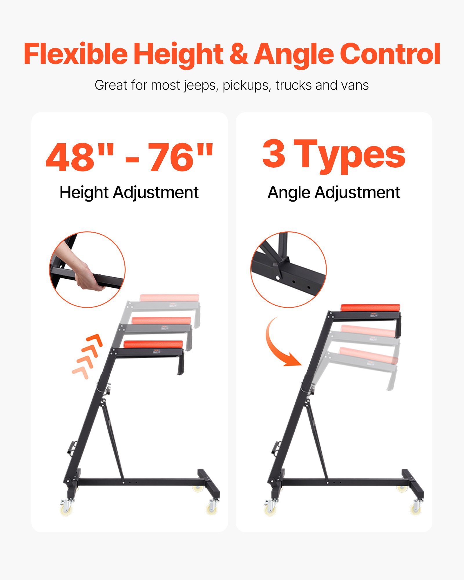 VEVOR Automotive Topside Creeper, Puzalica za popravak i održavanje automobila, s podesivom visinom od 40 do 70 inča, nosivost 400 lbs, visoka puzalica, 4 okretna kotačića, robusna