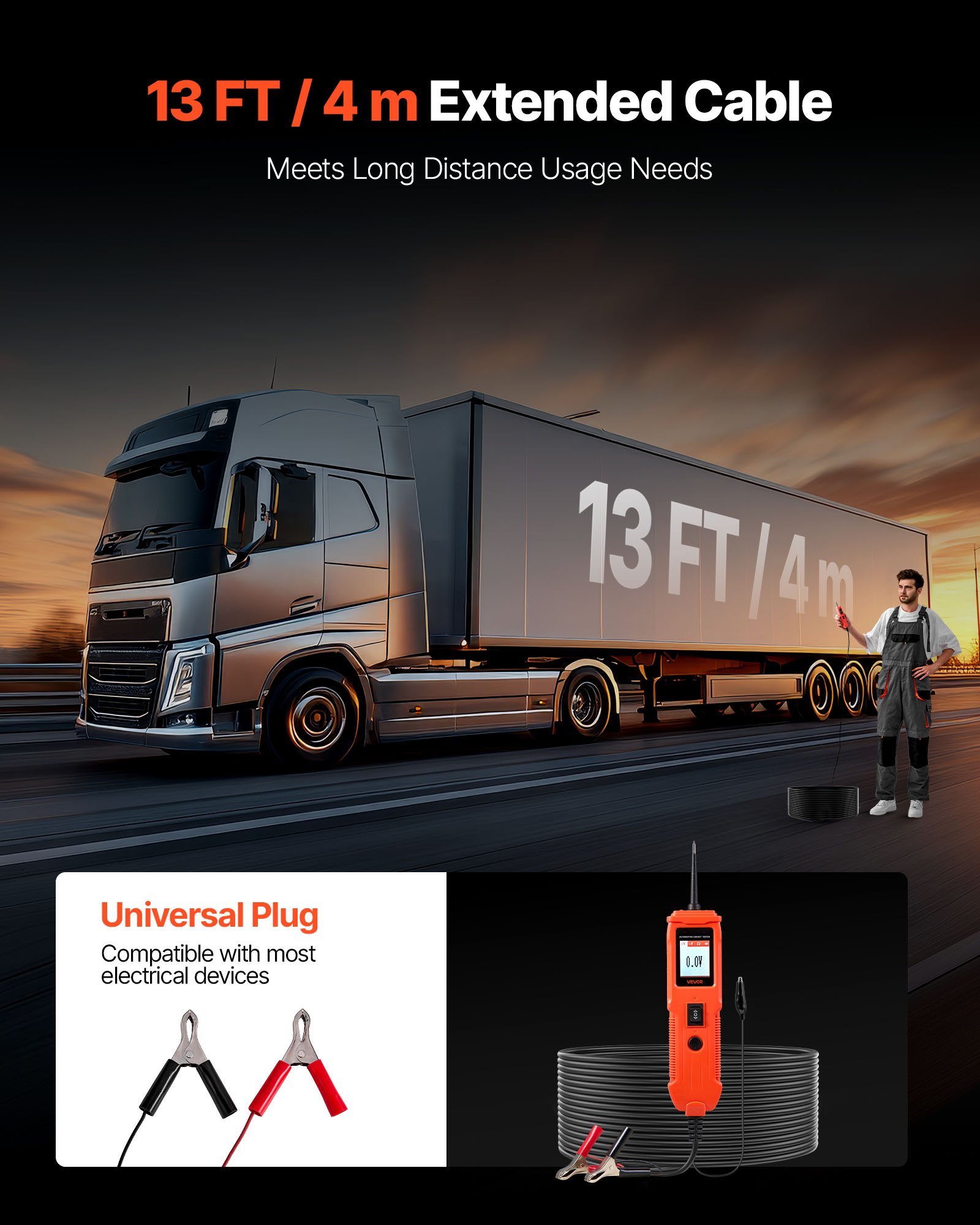 VEVOR automobilski ispitivač strujnih krugova 8-35 DCV s ispitnom sondom i TFT zaslonom u boji s pozadinskim osvjetljenjem, ispitivač napona s kabelom od 4 m i ABS kućištem, električni detektor, ispitivač strujnih krugova