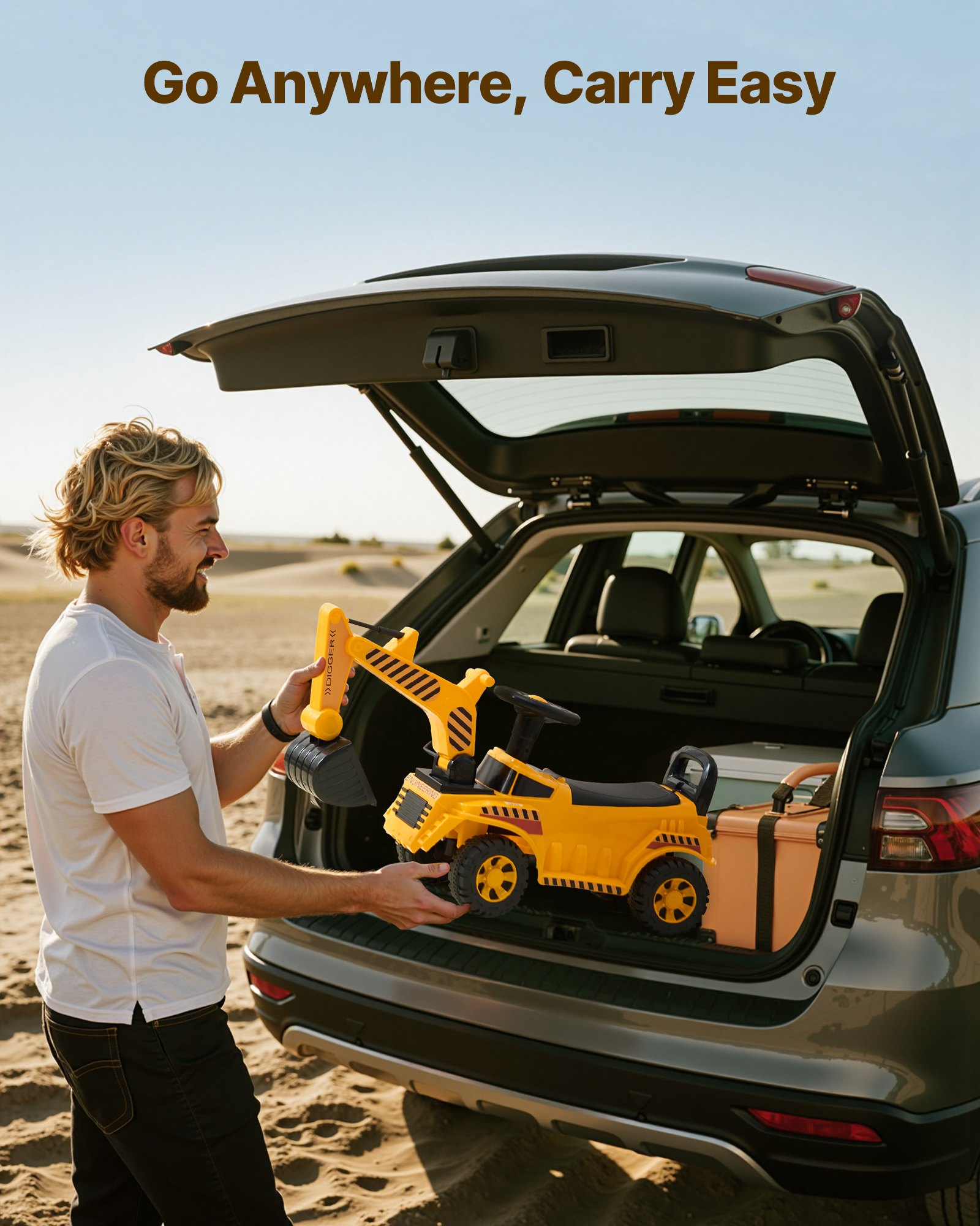 VEVOR Bager za vožnju, Dječji bager za malu djecu od 19 do 36 mjeseci, Igračka bager s kacigom i glazbom, Bager za vožnju, Nosivost 25 kg, Bager za vožnju, Pomoć pri hodanju za djecu, Žuta