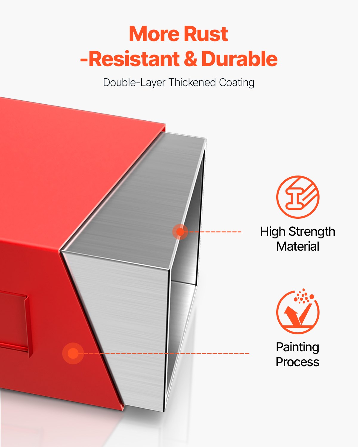 Veličina prikolice: 2,2 inča, Dimenzije artikla: 610 x 480 x 655 mm / 24,02 x 18,90 x 25,79 inča, Volumen (ft³): 5, Boja: Crvena, Dimenzije kliznih vrata: 240 x 240 x 30 mm / 9,45 x 9,45 x 1,18 inča, Nosivost (lbs): 800, Broj modela artikla: R-02, Materijal: Teški čelik, Težina artikla: 72,49 lbs / 32,9 kg, Promjer otvora ručke alata: 2,76 inča / 70 mm (vanjski promjer)