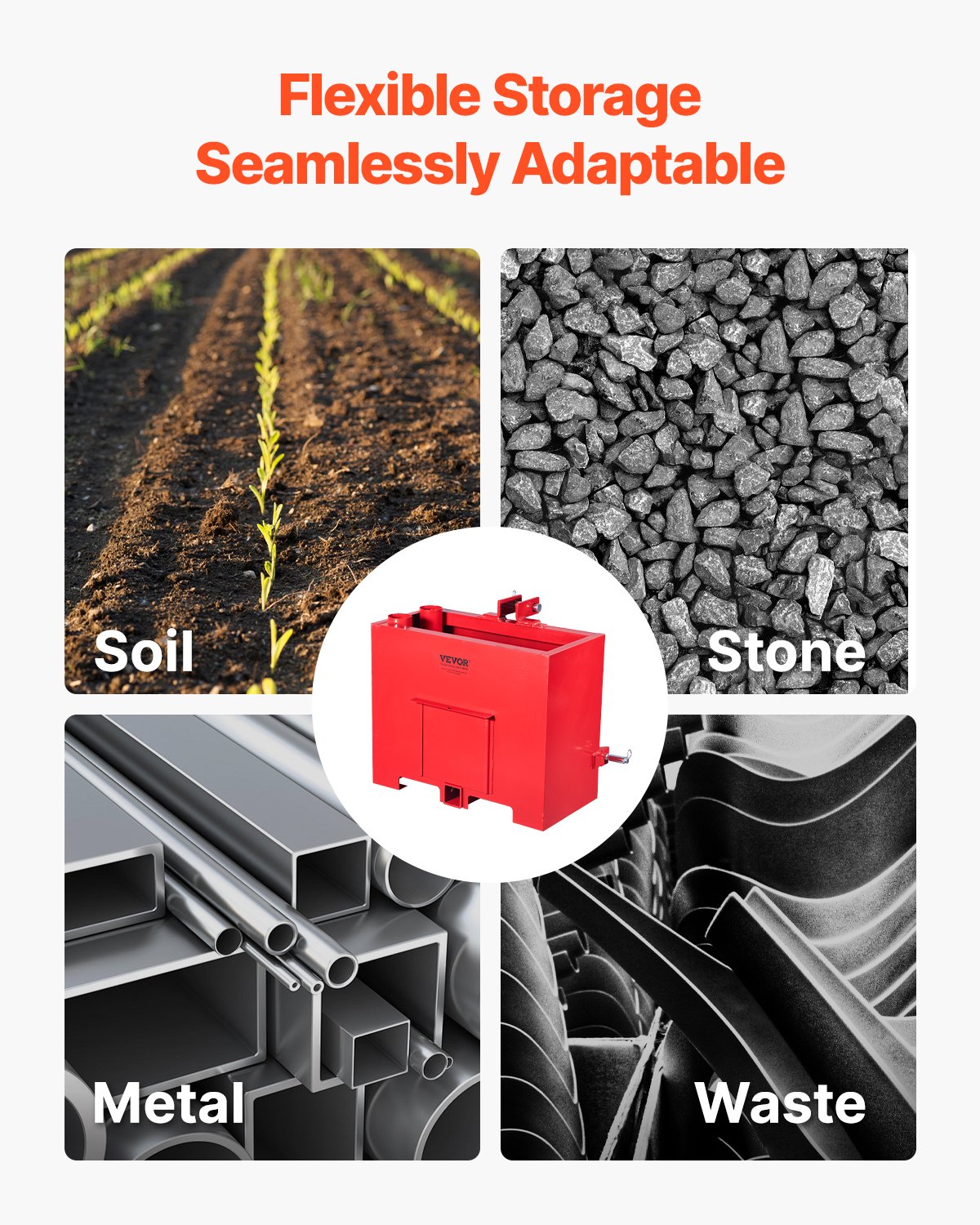 VEVOR Balast za prikolicu, kutija za balast za traktor kategorije 1 s 3 točke i kapacitetom od 363 kg, za prikolicu od 5,6 cm, čelični priključak za veliki utovarivač s kliznim vratima, crvena