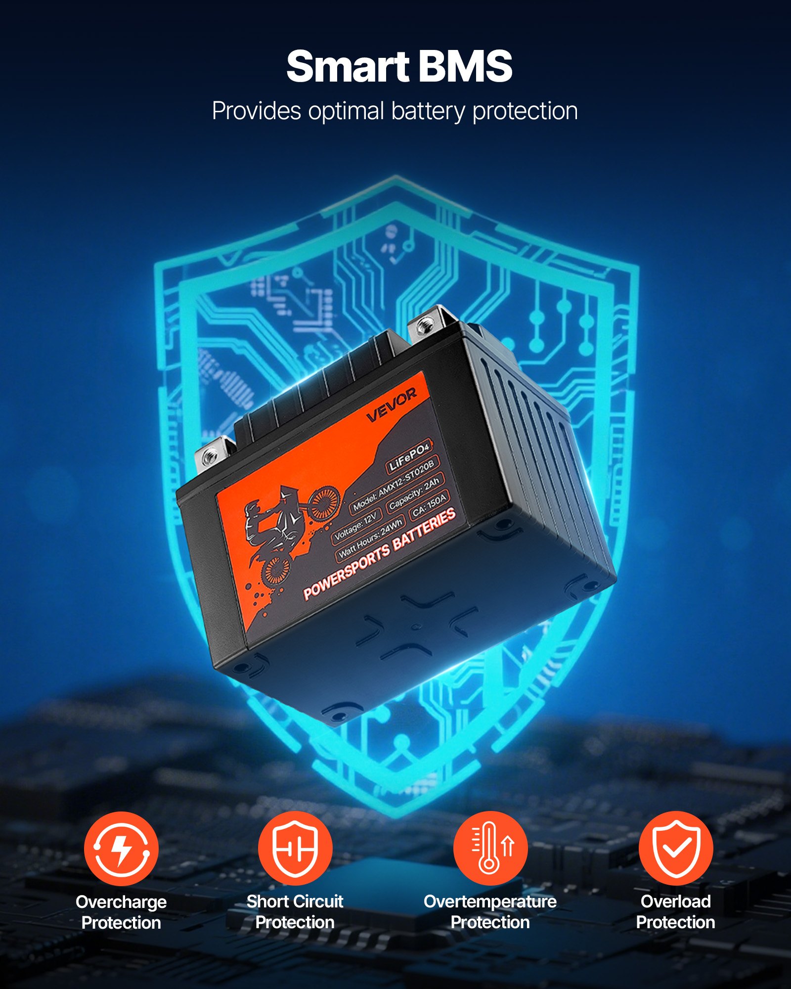 VEVOR Akumulator za motocikle, 12 V 2 Ah, LiFePO4 litijeva prethodno napunjena Powersports baterija, bez održavanja i snažna, kompatibilna s ATV-ima, motociklima, jet skijima, skuterima, UTV-ima i još mnogo toga