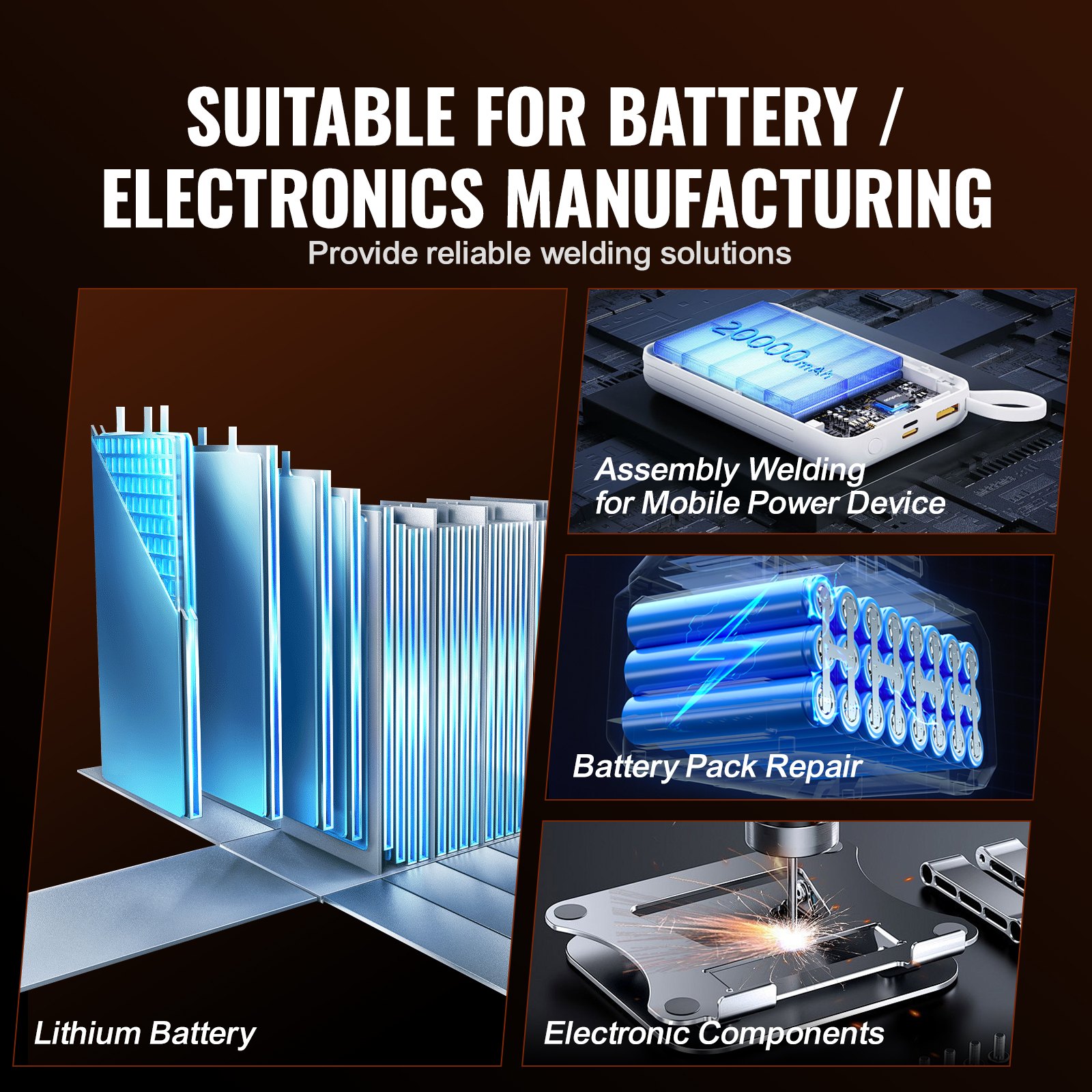 VEVOR Bežični aparat za točkasto zavarivanje, 737G pulsni aparat za točkasto zavarivanje, prijenosna bežična stanica za zavarivanje za teške uvjete rada s 2 načina zavarivanja i LED rasvjetom za 0,12 mm čisti nikal, baterija 18650/14500