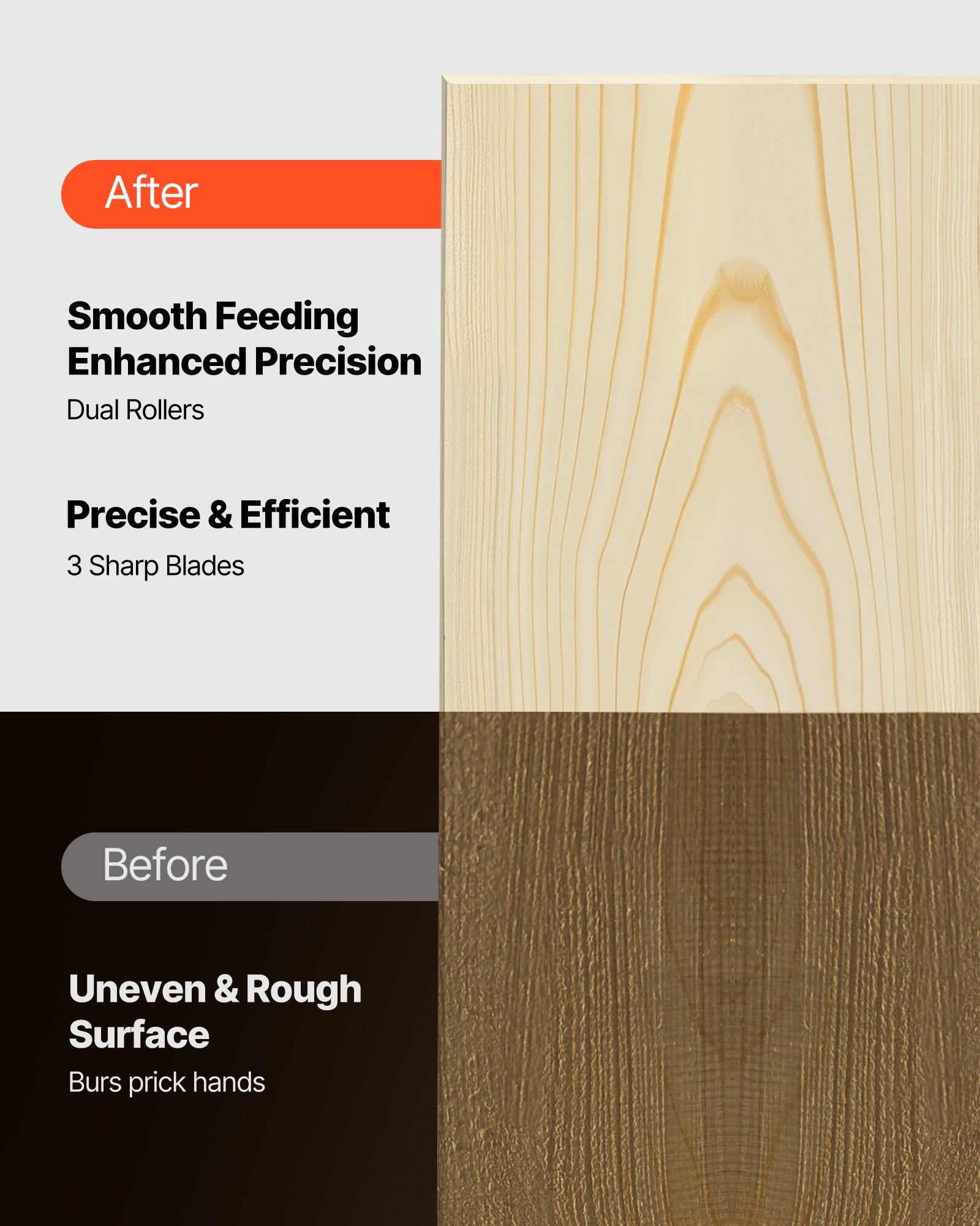 VEVOR blanjalica debljine, 2 brzine, radni stol širine 330 mm, blanjalica, tri oštrice, 2000 W, 23 500 okretaja u minuti, snažan motor, dvostruki kotačići, zaštita od prevrtanja, obrada tvrdog i mekog drva