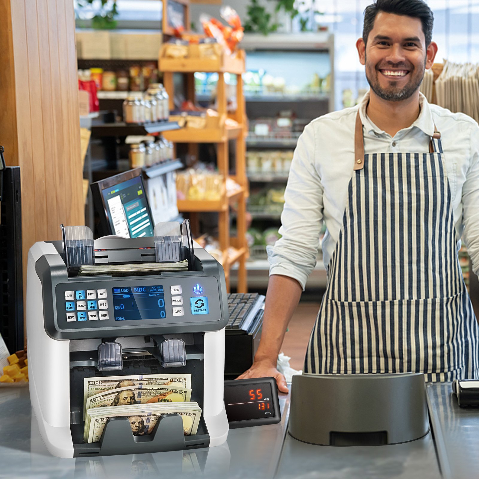 VEVOR Brojač novca, brojač novčanica s miješanim apoenima, 2CIS, SN, UV, IR, MG, DD otkrivanje krivotvorina, više valuta, uređaj za brojanje i sortiranje vrijednosti, omogućen pisač