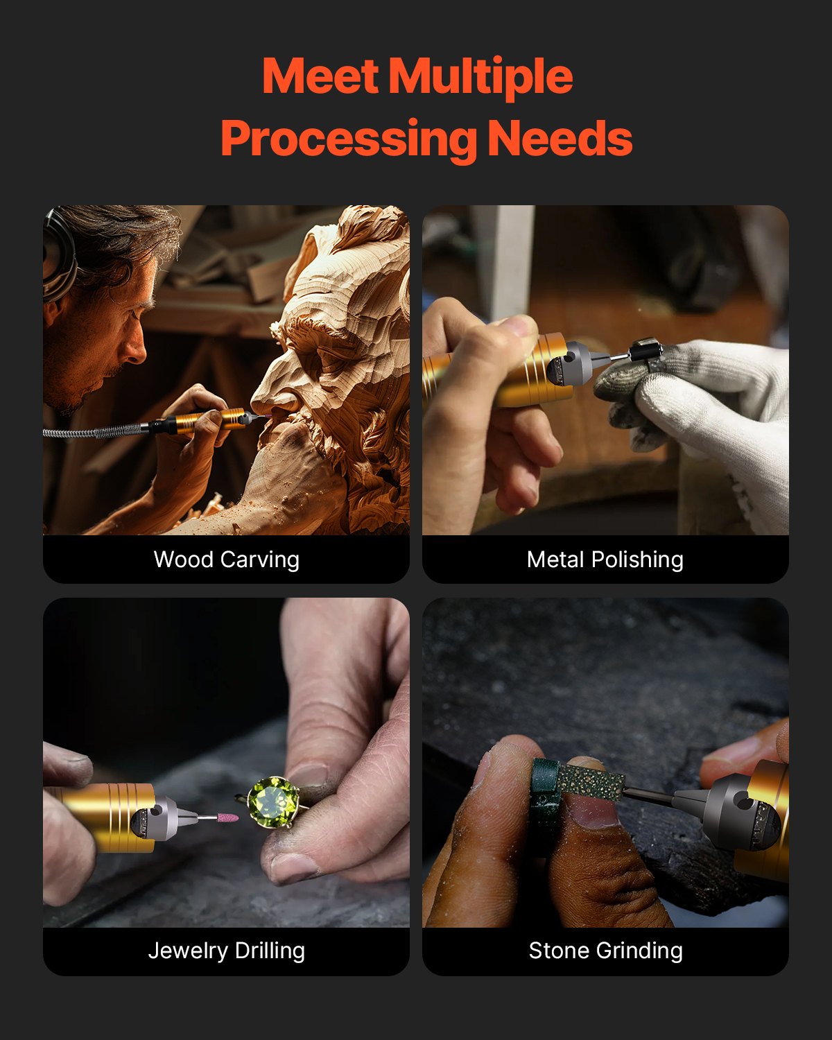 VEVOR Brusilica s fleksibilnom osovinom, 1200 W, 30 000 o/min, rotacijski alat s fleksibilnom osovinom, višenamjenska viseća brusilica s 31-dijelnim setom pribora i nožnom papučicom za rezbarenje, poliranje, bušenje i… Poliranje