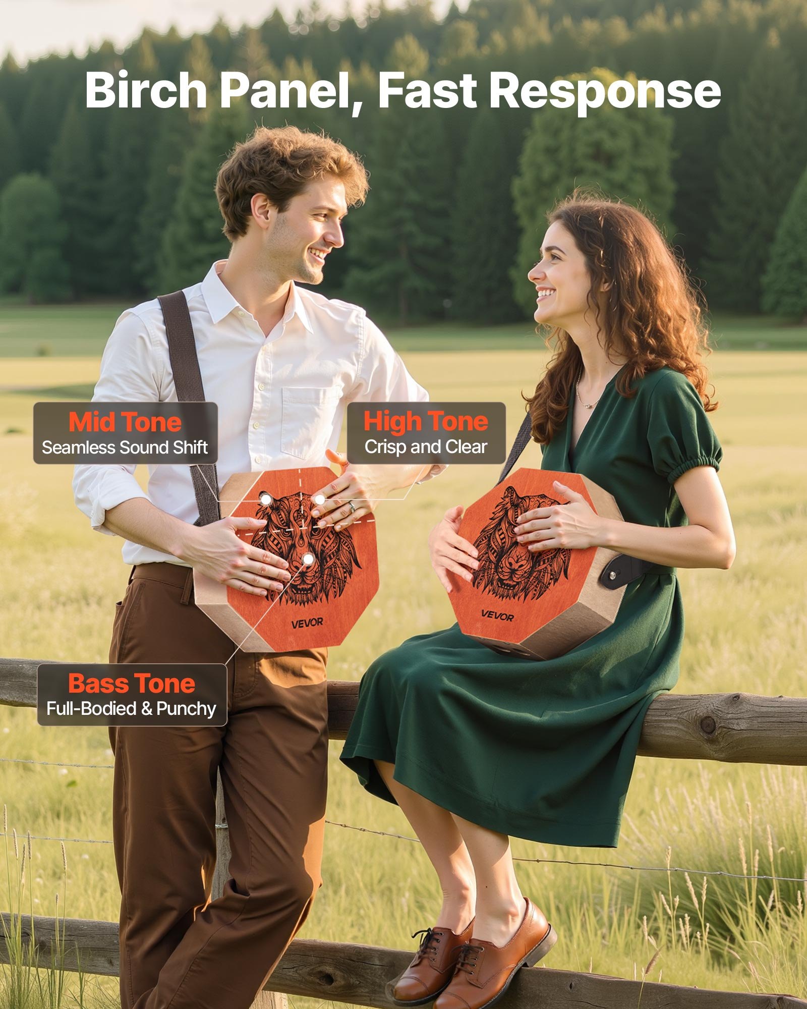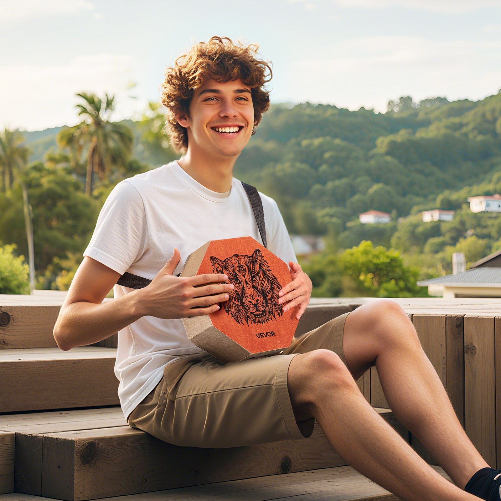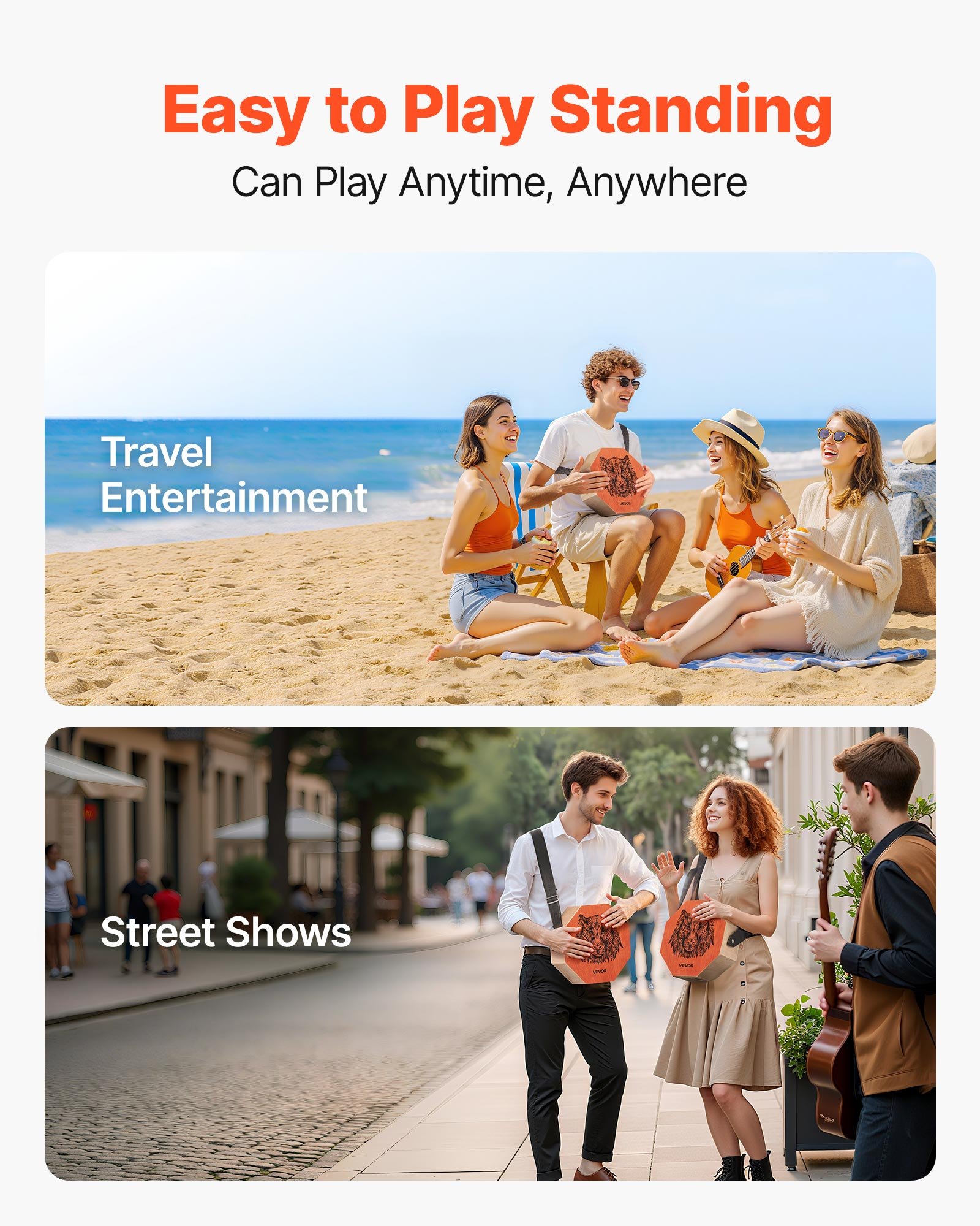 VEVOR Cajon instrument s unutarnjim žicama za gitaru i tonom za bas, prijenosna drvena kutija za udaraljke, bubanj od breze s podesivim remenom, za početnike i profesionalce, 295x295x100 mm