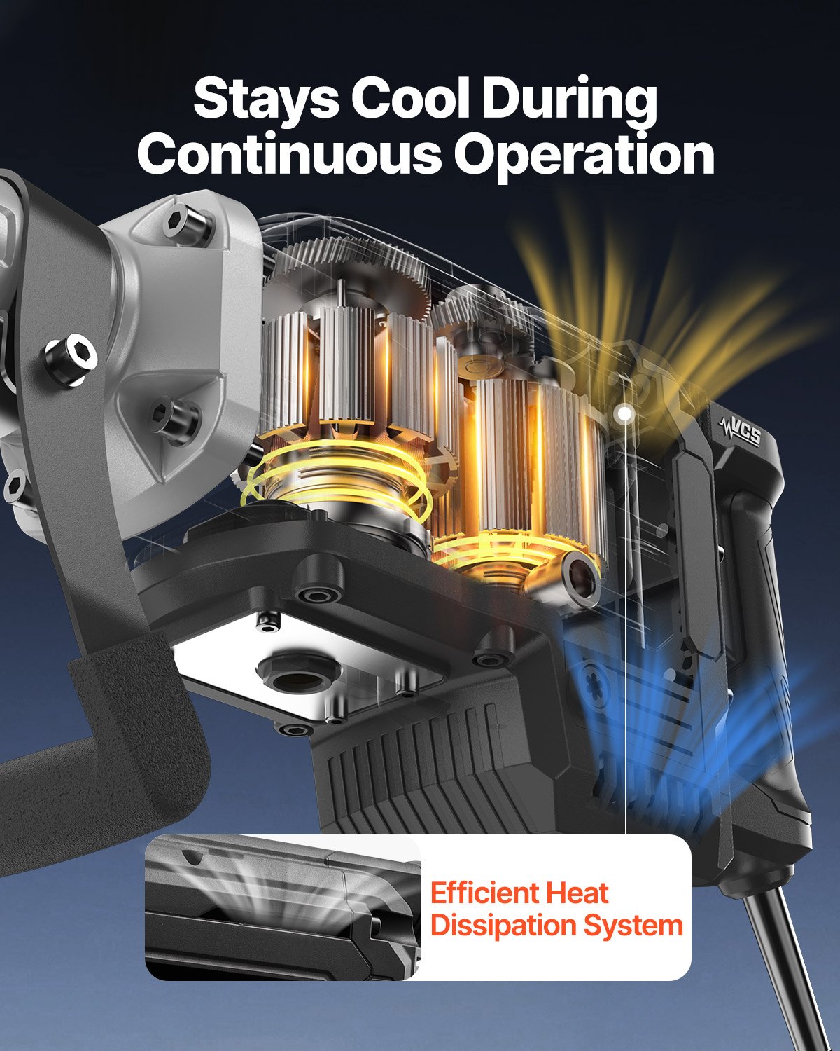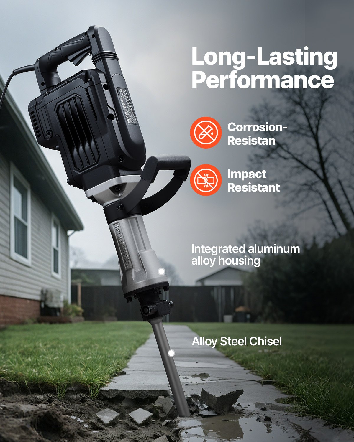 VEVOR čekić za rušenje 3000 W električni čekić za beton, pneumatski čekić od 1700 udaraca u minuti sa šiljastim dlijetom i torbom za nošenje i rukavicama i zaštitnim naočalama za betonske zidove, cigle, pločice i temelje, crni.