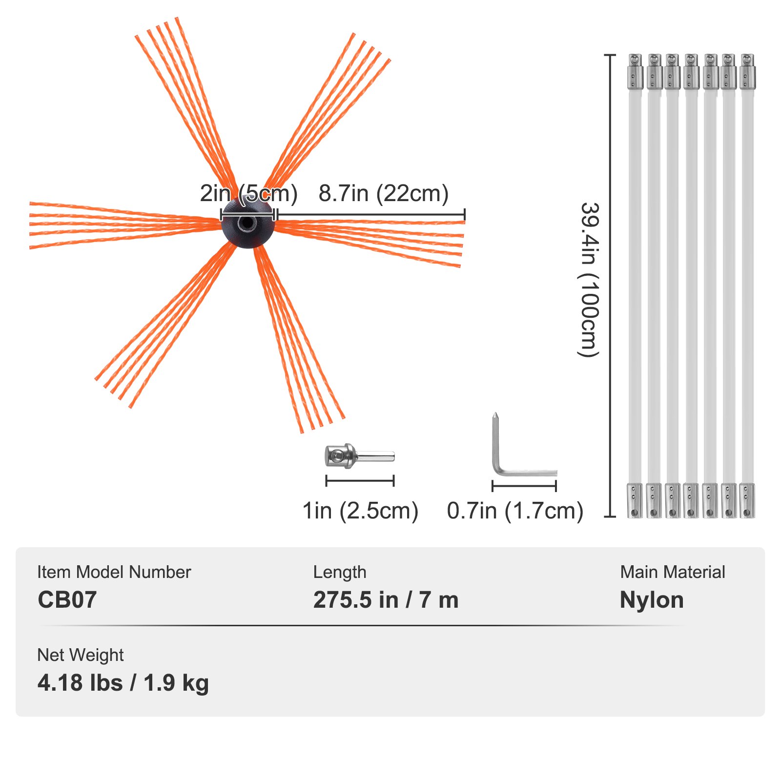 VEVOR Četka za cijevi za kamin 7 m Četke za dimnjak uklj. 7 šipki Četka za kamin Četka za kamin Najlonska četka za dimnjak Četka za čišćenje cijevi za kamin Četka za čađu za cijevi za dimnjak