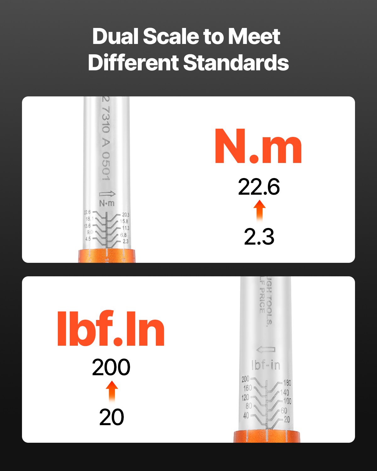 VEVOR Click moment ključ s pogonom 1/4″ 2,3–22,6 Nm, set dvosmjernih moment ključeva s dvostrukim rasponom skala, 72 zuba ±3% visokoprecizni legirani čelik za popravak automobila