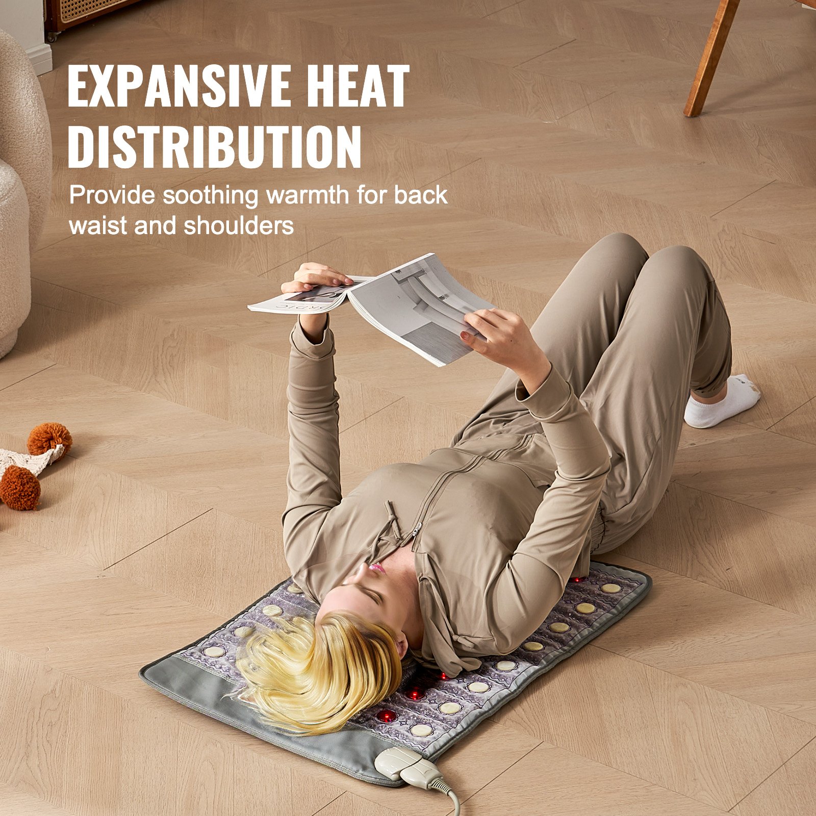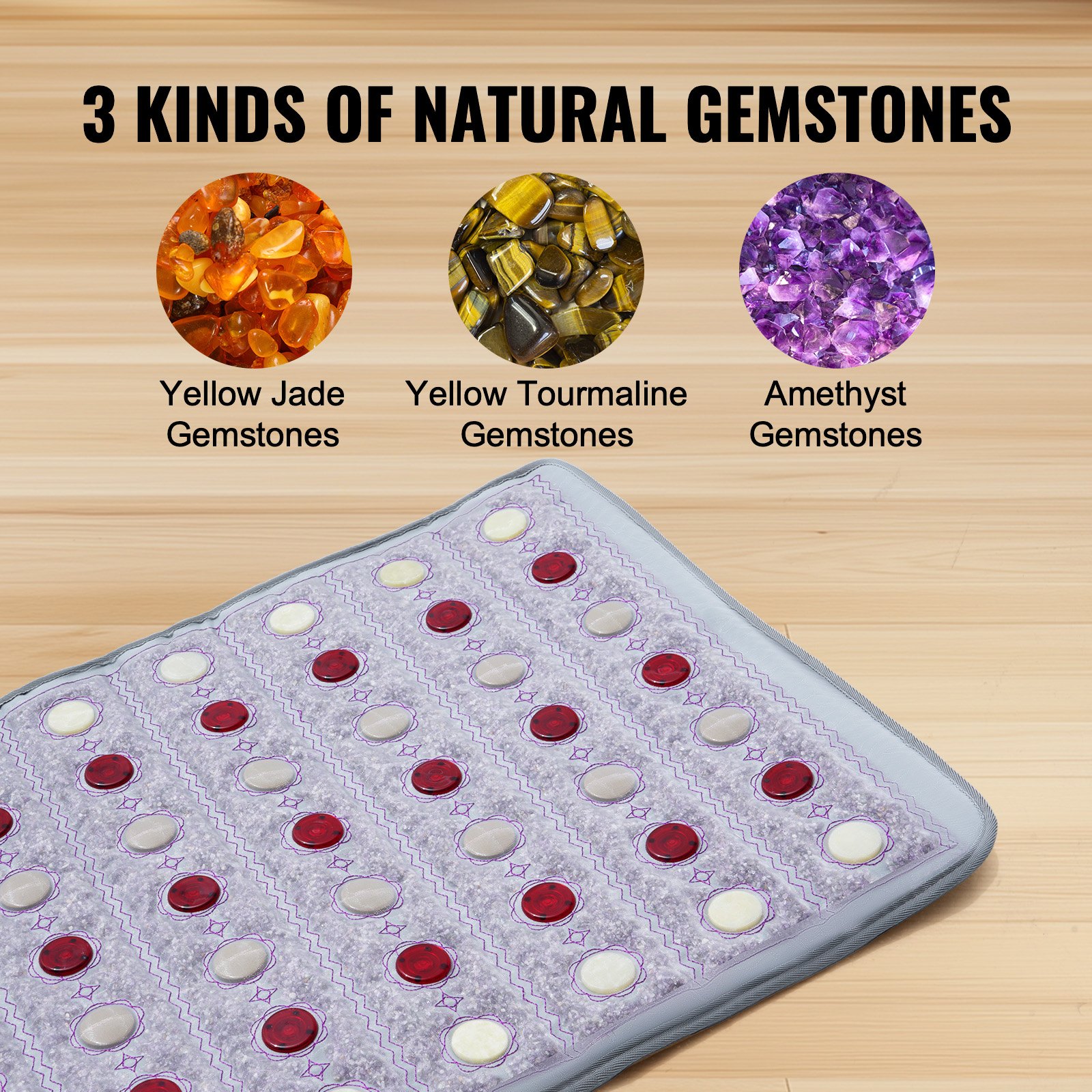VEVOR pojas za grijanje dalekog infracrvenog zračenja, grijaća podloga od žada i turmalina s fotonskom svjetlošću od 660 nm i negativnim ionima, prostirka za terapiju dragim kamenjem s timerom od 0-12 sati za ublažavanje bolova u leđima