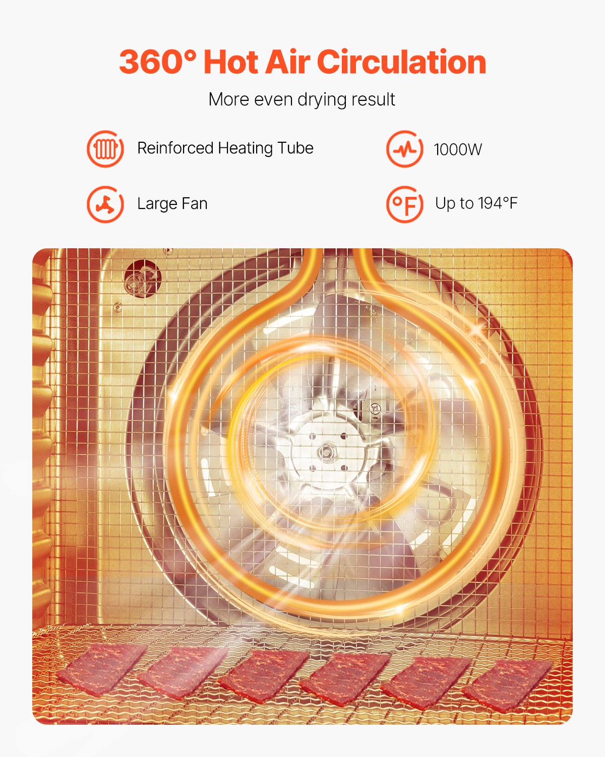 VEVOR dehidrator hrane, 10 ladica od nehrđajućeg čelika, električni dehidrator hrane od 1000 W s podesivom temperaturom, liofilizator za sušeno meso, voće, povrće, začinsko bilje, pseće poslastice