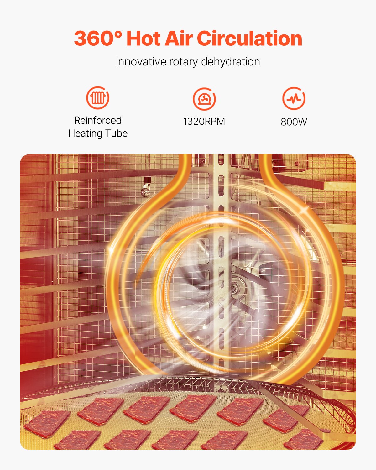 VEVOR dehidrator hrane, 12 ladica od nehrđajućeg čelika, električni dehidrator hrane od 800 W s podesivom temperaturom, liofilizator za sušeno meso, voće, povrće, začinsko bilje, pseće poslastice