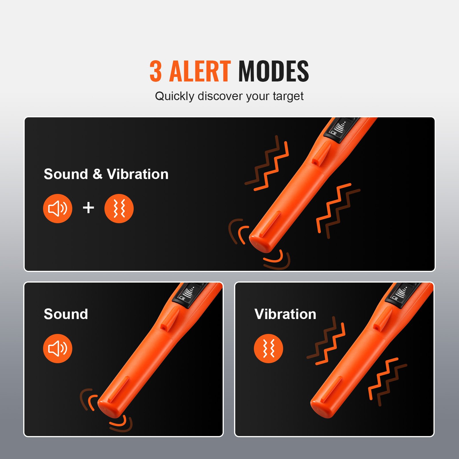 VEVOR detektor metala Pinpointer IP68 potpuno vodootporan detektor metala 3 načina rada Pinpointer potraga za blagom s LCD/Zvuk/Vibracija/Zvuk + Vibracija 9V baterija i baršunasta torbica uključene