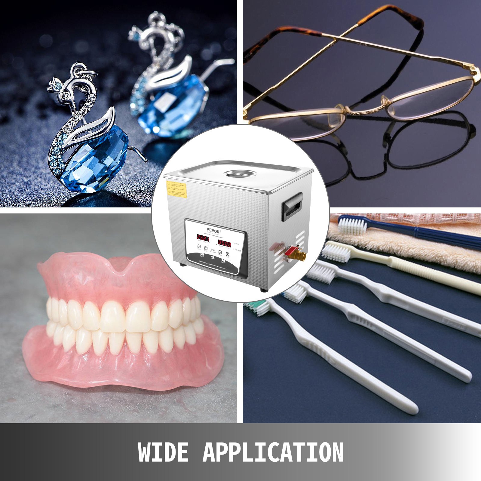 VEVOR 10L Digitalni ultrazvučni čistač 40kHz Ultrazvučni čistač Čišćenje nakita Ultrazvučni uređaj za čišćenje Uređaj za čišćenje naočala s timerom grijača