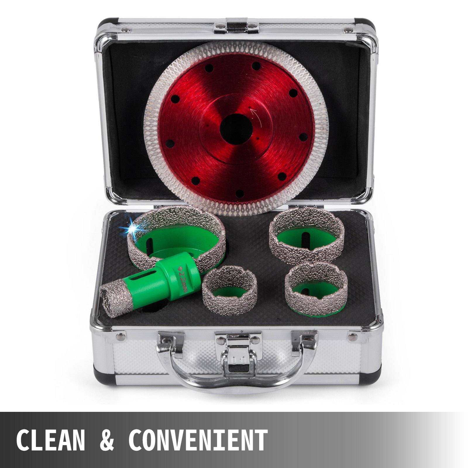 VEVOR Dijamantna pila za rupe 20, 40, 45, 50, 68 mm, Svrdlo za pločice s navojem M14, Dijamantno svrdlo duljine svrdla 60 mm, Set svrdla za staklo s 5 svrdla, Kutija za alat, Folija za brtvljenje pločica, granit