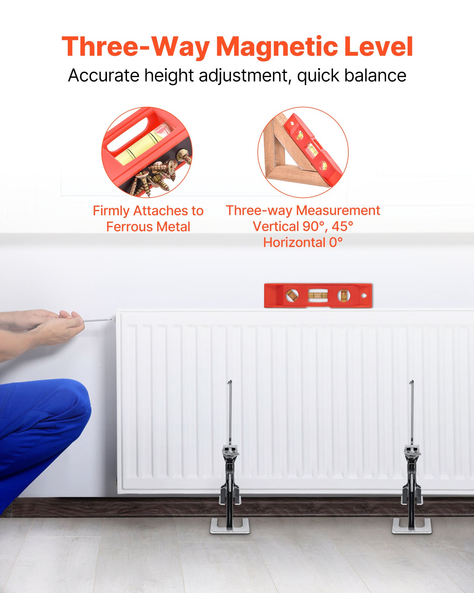 VEVOR dizalica za uštedu rada, pakiranje od 2 komada, nosivost 120 kg, podizanje do 165 mm, ručni alat za podizanje s magnetskom libelom, 2 načina podešavanja, za vrata, prozore, namještaj, obradu drveta, crna